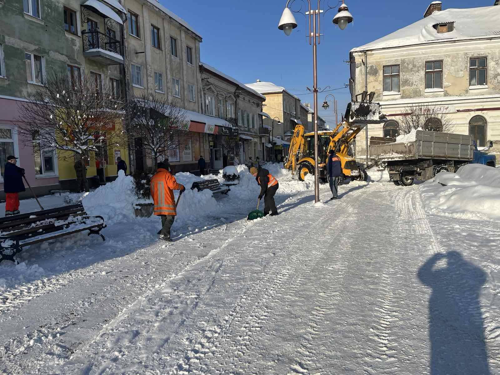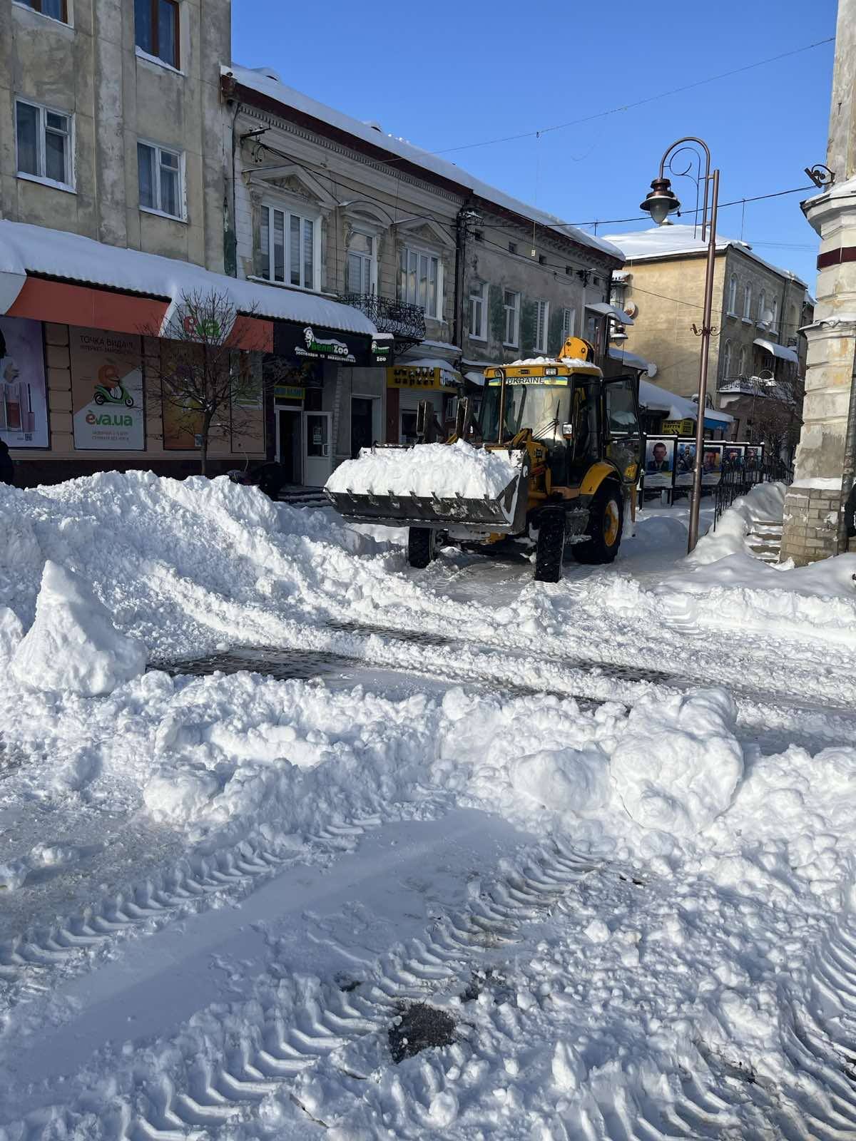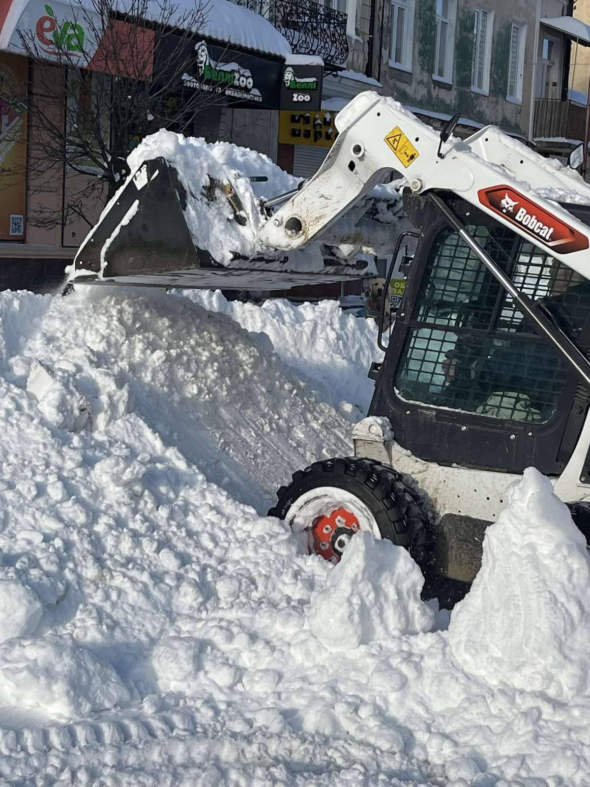 Зараз у місті постає ще одне непросте завдання – сніг потрібно вивозити. Його вже просто нема куди горнути, узбіччя і тротуари переповнені. Це складна і ресурсозатратна робота, але без цього не обійтися.