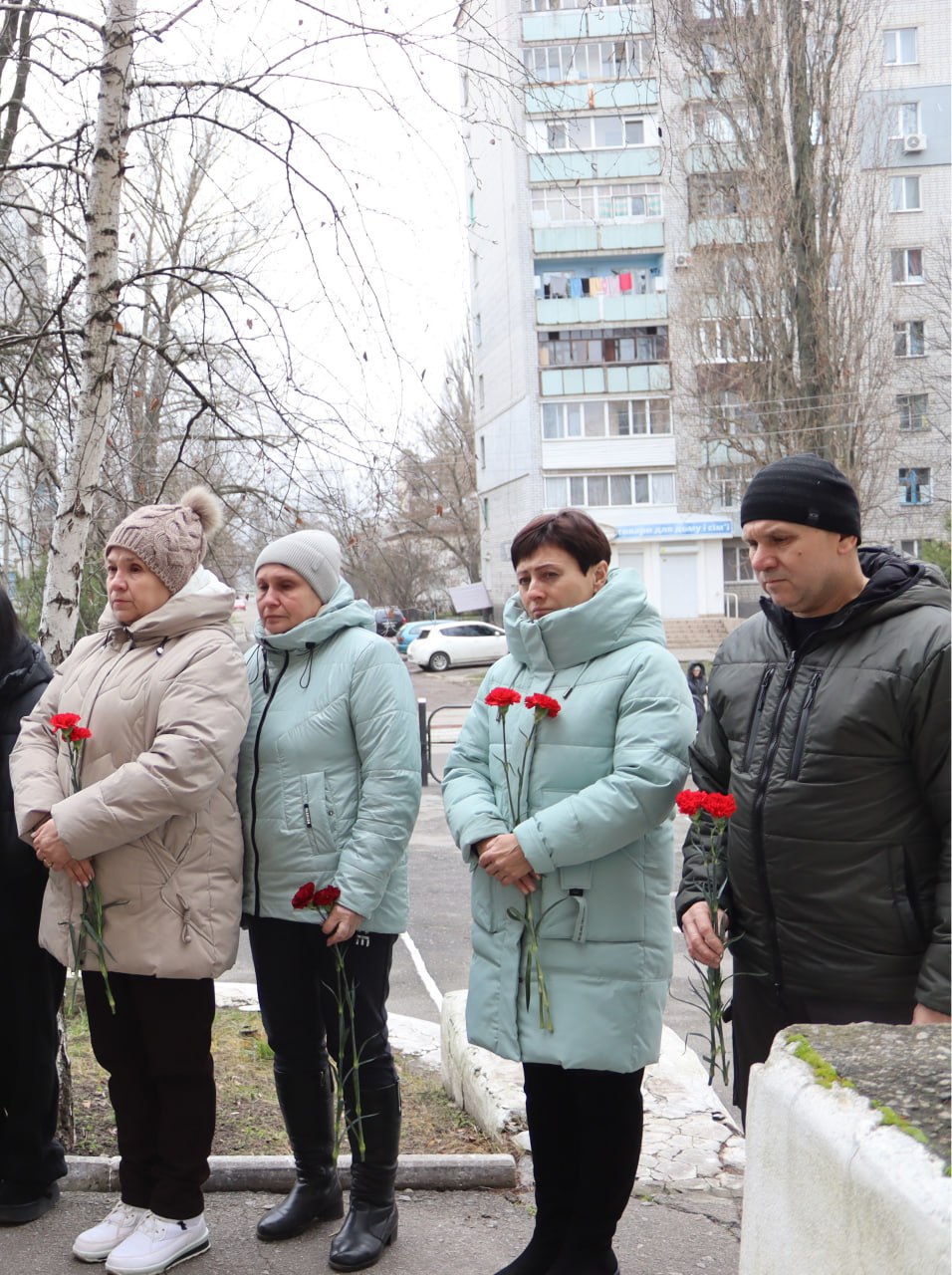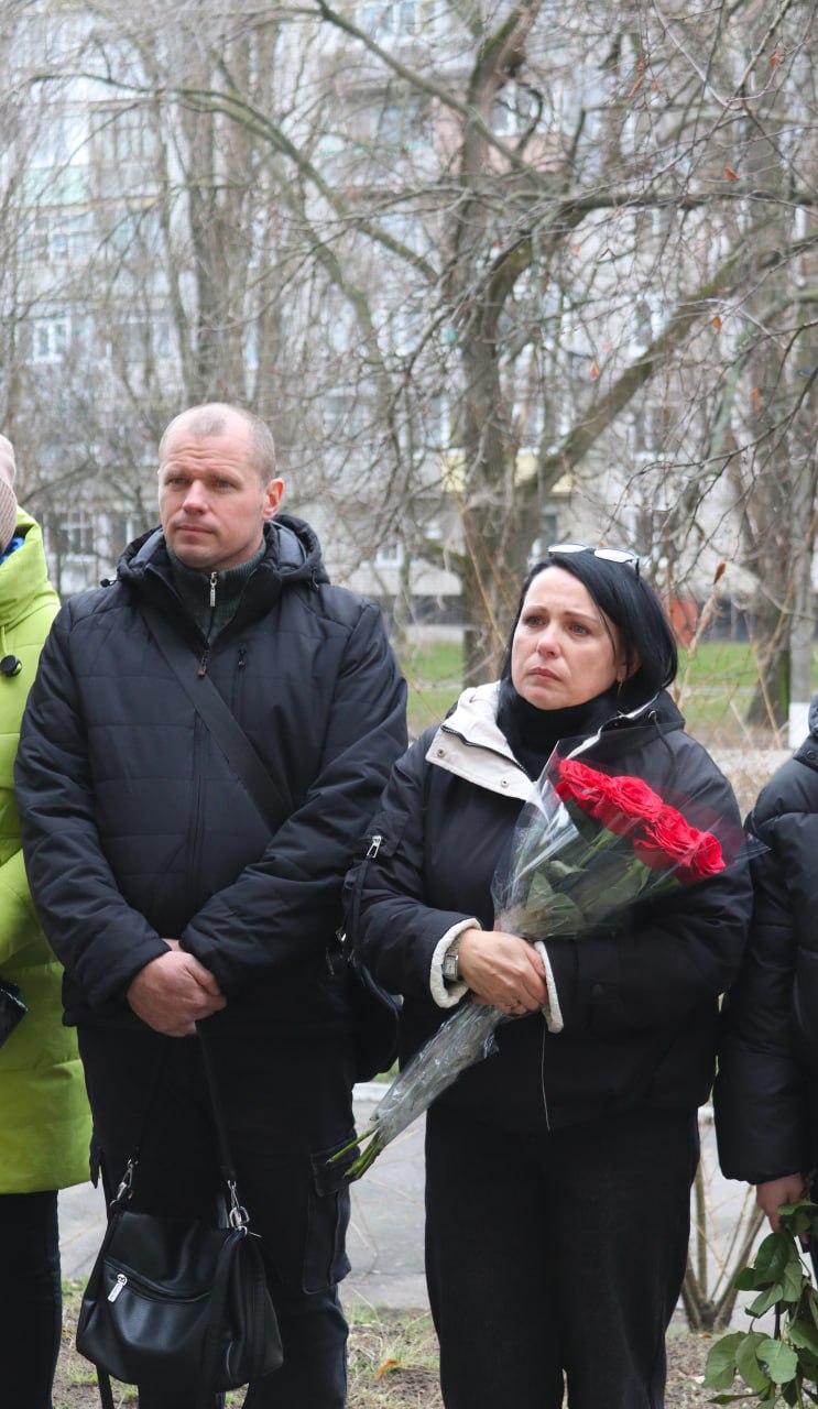На шкільному подвір’ї зібралися вчителі, учні, рідні та близькі Захисника, щоб вшанувати його світлу пам’ять і віддати шану подвигу українського воїна. Захід розпочався з виконання Державного Гімну України.