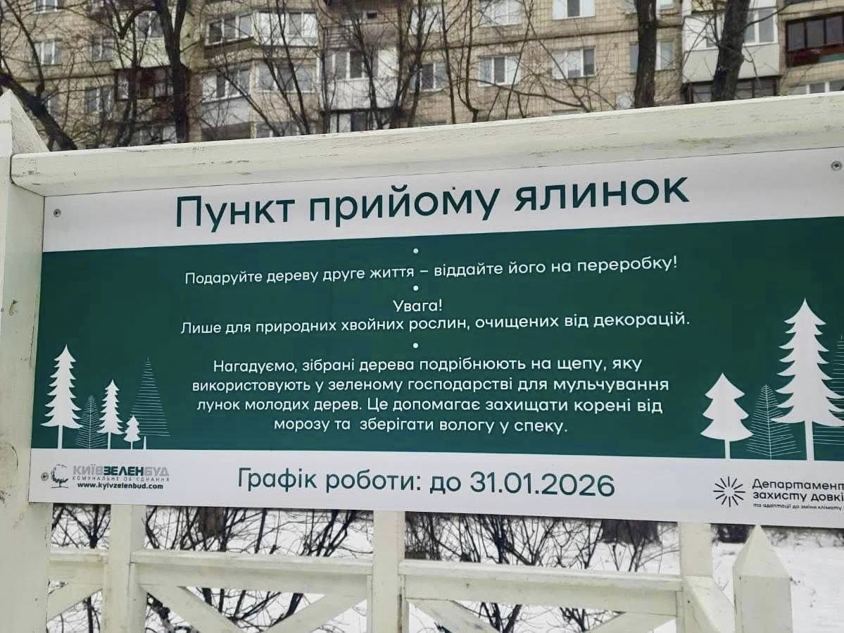2 січня, в Києві запрацювали 72 пункти прийому живих хвойних дерев. Після завершення свят закликаємо мешканців і гостей Києва передавати живі хвойні дерева на екологічну утилізацію.