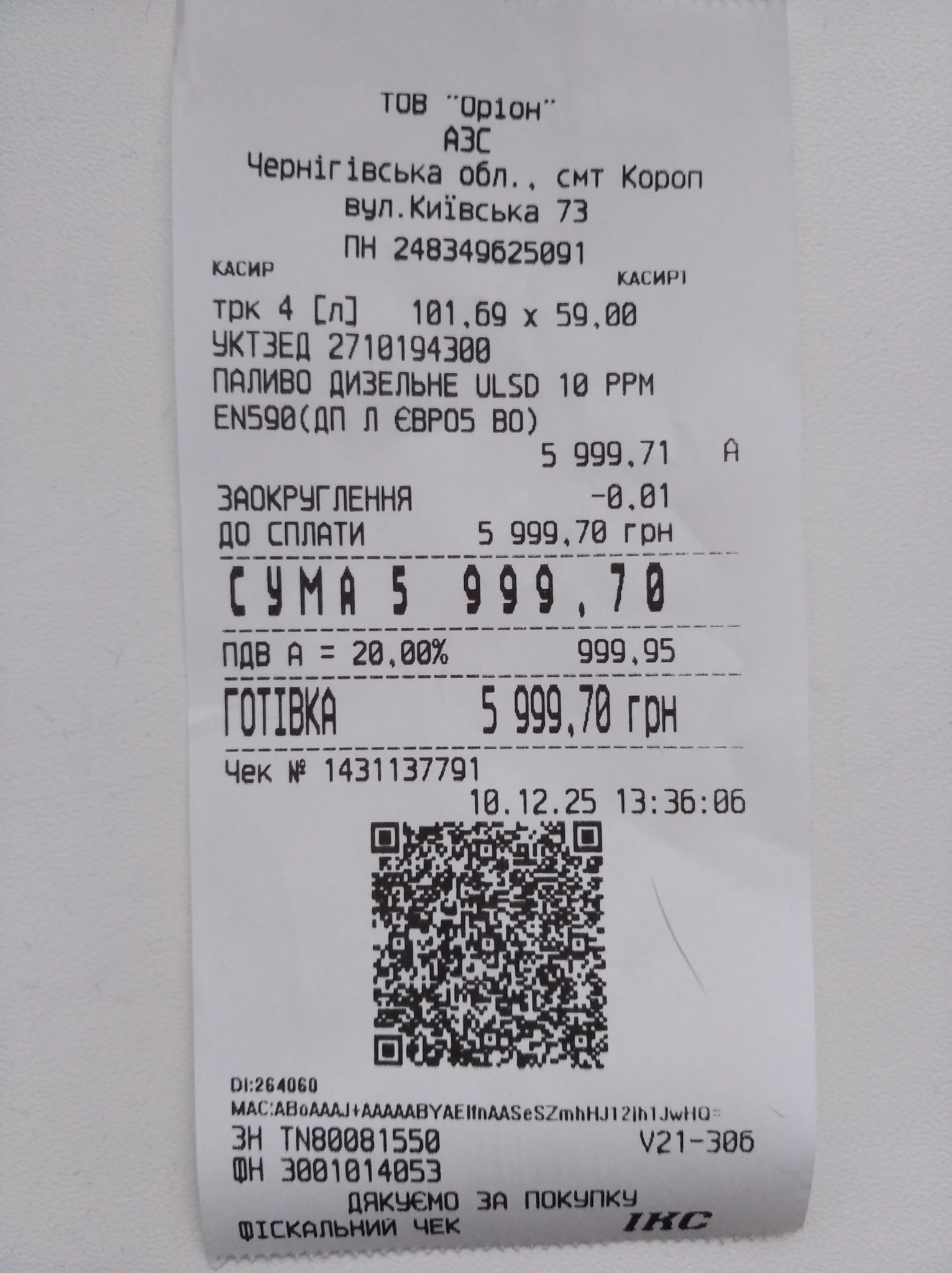 Їм було надано дизельне паливо на суму 6 000 грн – це внески, зібрані під час благодійного концерту минулої середи.