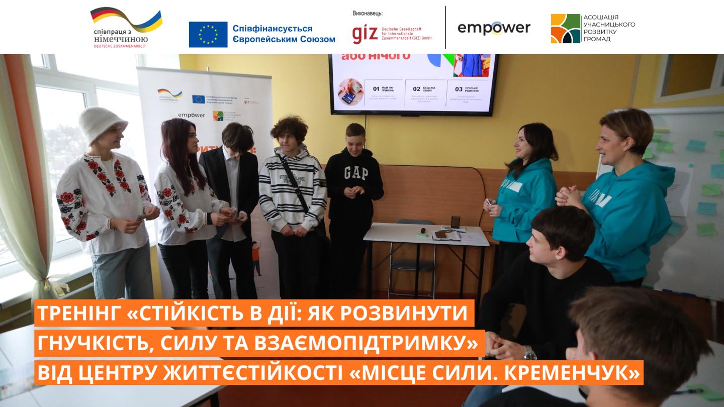 🔸 тренінг «Стійкість в дії: як розвинути гнучкість, силу та взаємопідтримку» від Центру життестійкості «Місце сили.Кременчук».