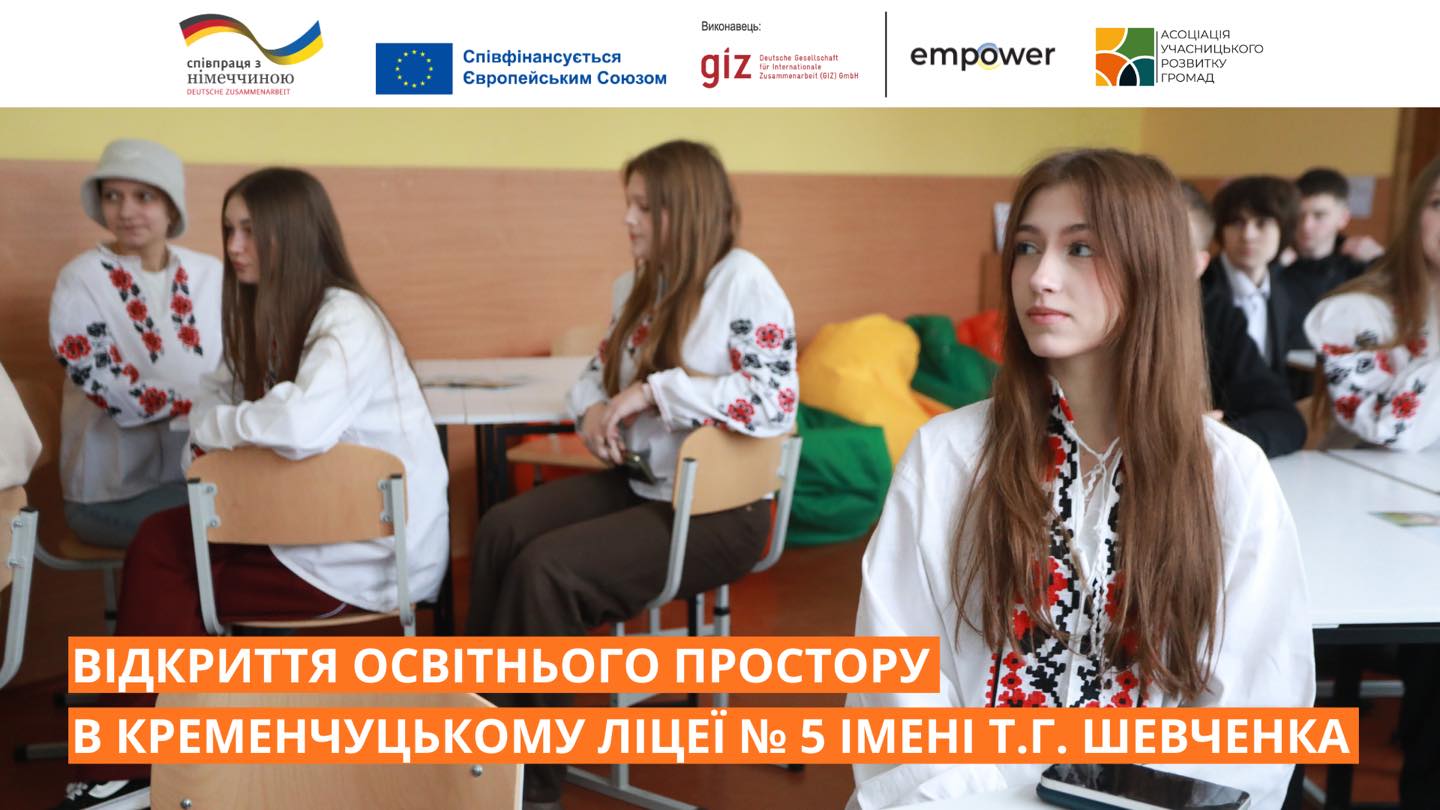 У Кременчуцькому ліцеї № 5 імені Т.Г. Шевченка відкрили освітній простір у межа…