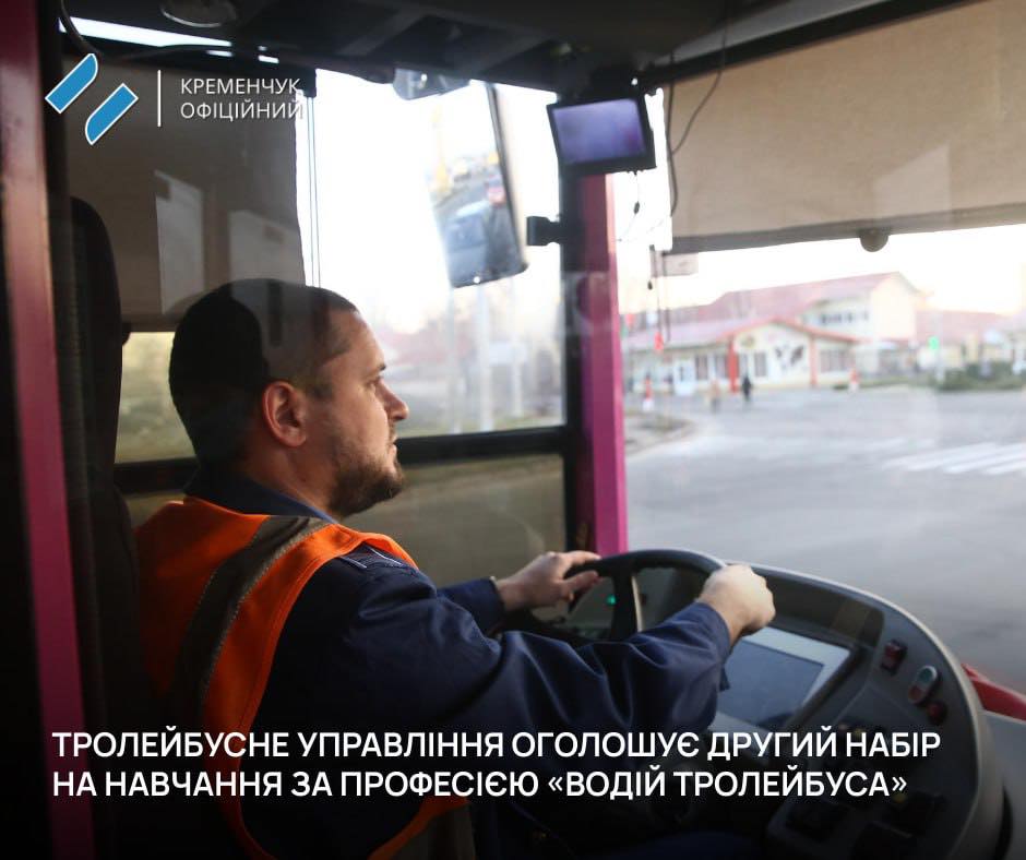 🚎 У Кременчуці оголошено другий набір на навчання за професією «Водій тролейбуса».
