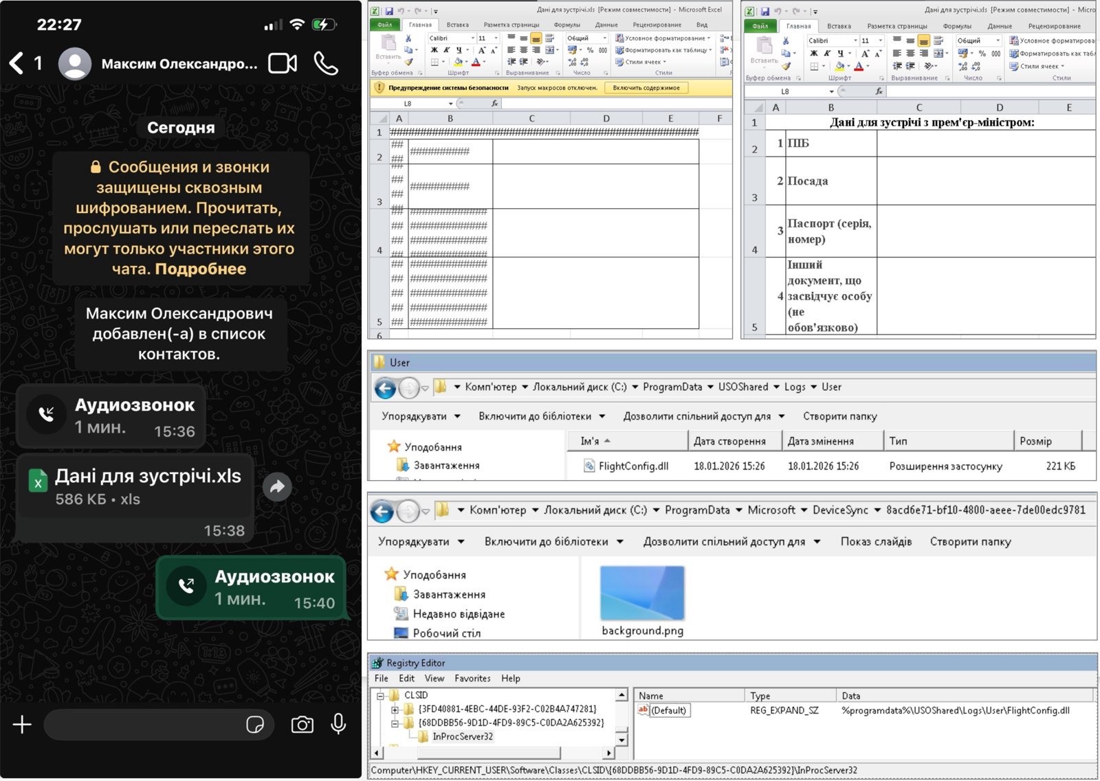Невідомою особою (“Максим Олександрович”) за допомогою WhatsApp з номеру телефону українського оператора мобільного зв’язку здійснено дзвінок на особистий номер співробітника, проведено комунікацію щирою українською мовою з демонстрацію глибокого знання контексту, після чого у згаданий мессенджер відправлено XLS-документ, за темою запланованої зустрічі.