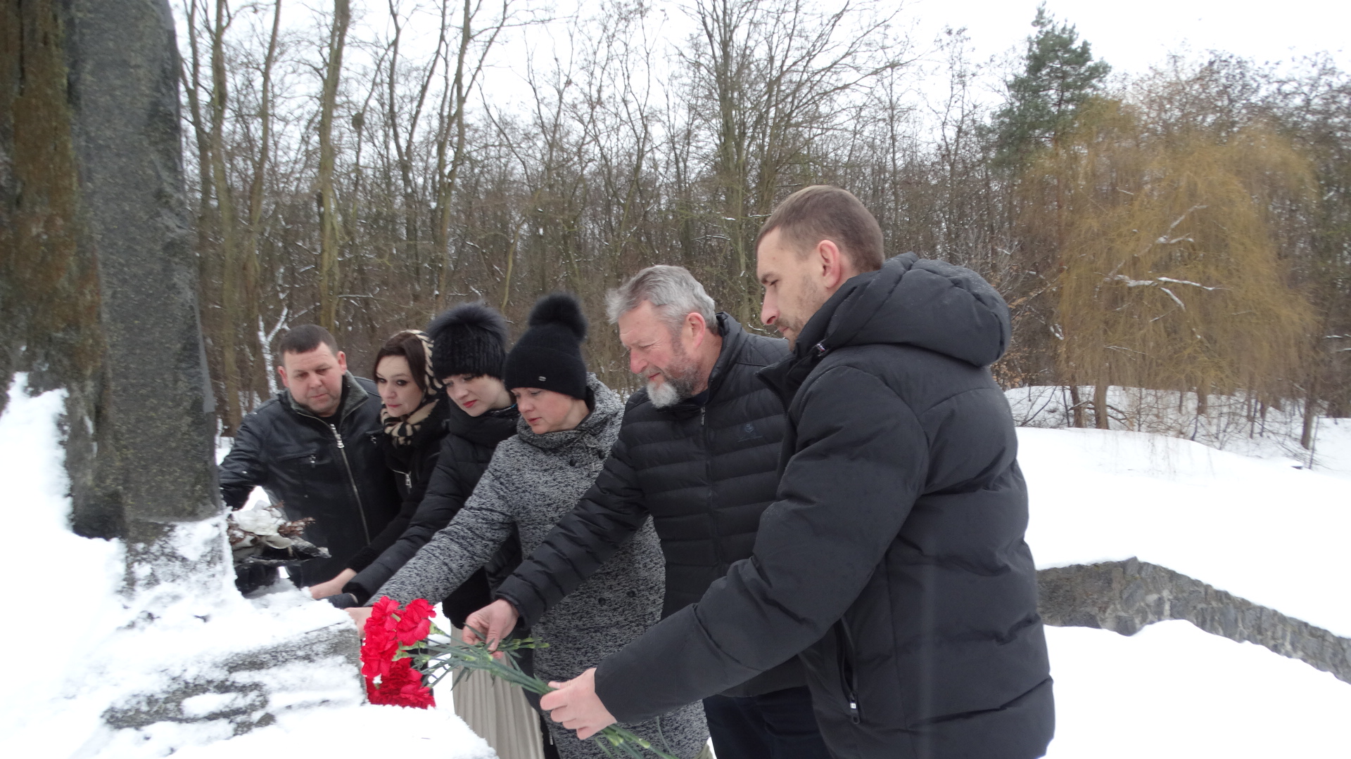 На знак пам’яті про загиблих були запалені лампадки, до підніжжя пам’ятного знаку лягли живі квіти.