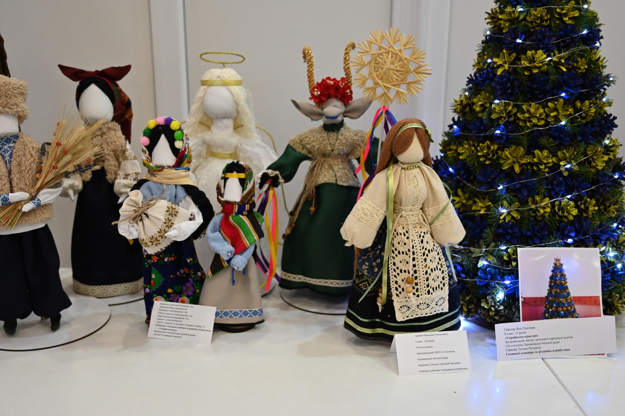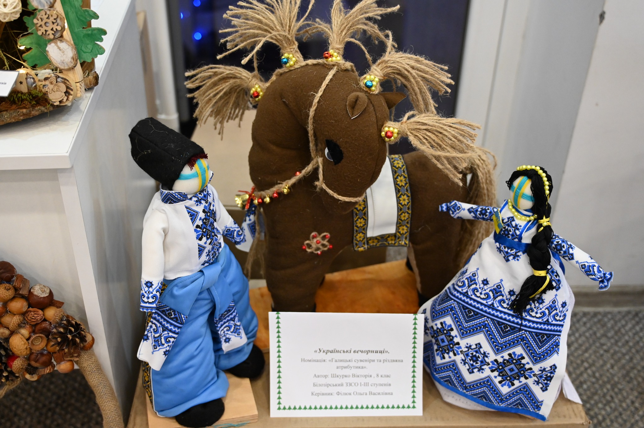 🏆 у номінації «Галицькі сувеніри та різдвяна атрибутика» – вихованці гуртка «Іграшки та сувеніри» Лановецького міського комунального будинку дитячої та юнацької творчості (композиція «Колядники «Україна колядує», керівник Тетяна Гарбар)