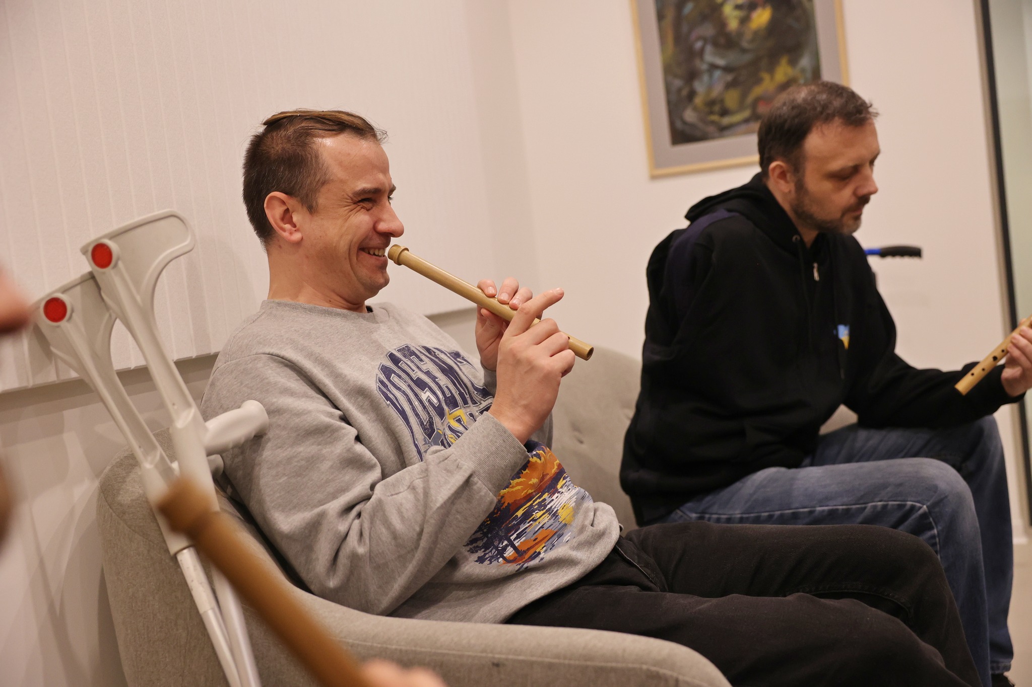 Уже вчора захисники, які проходять реабілітацію в центрі UNBROKEN, зіграли на акордеоні, гітарі, сопілках і фортепіано. Програма передбачає регулярні заняття з музичної арттерапії — індивідуальні та групові, з грою на інструментах і співом. Вони допомагають відновлювати фізичні й ментальні сили, знаходити нові захоплення та спілкуватися.