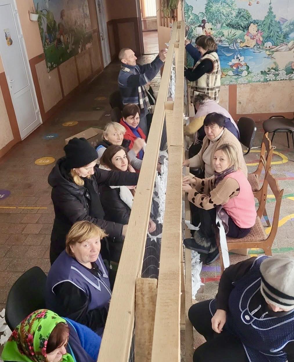 💪У Москалівському ліцеї триває безперервна робота з плетіння маскувальних сіток та виготовлення окопних свічок.