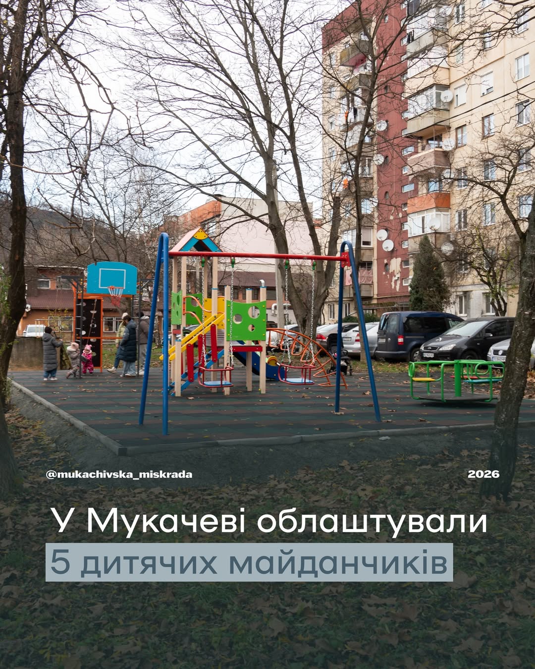 Упродовж 2025 року в Мукачеві облаштували п’ять нових дитячих ігрових майданчиків, аби створити комфортні умови для дозвілля наймолодших жителів міста. Ігрові зони оснащені сучасними елементами, виготовленими з якісних матеріалів, та відповідають чинним нормам безпеки.