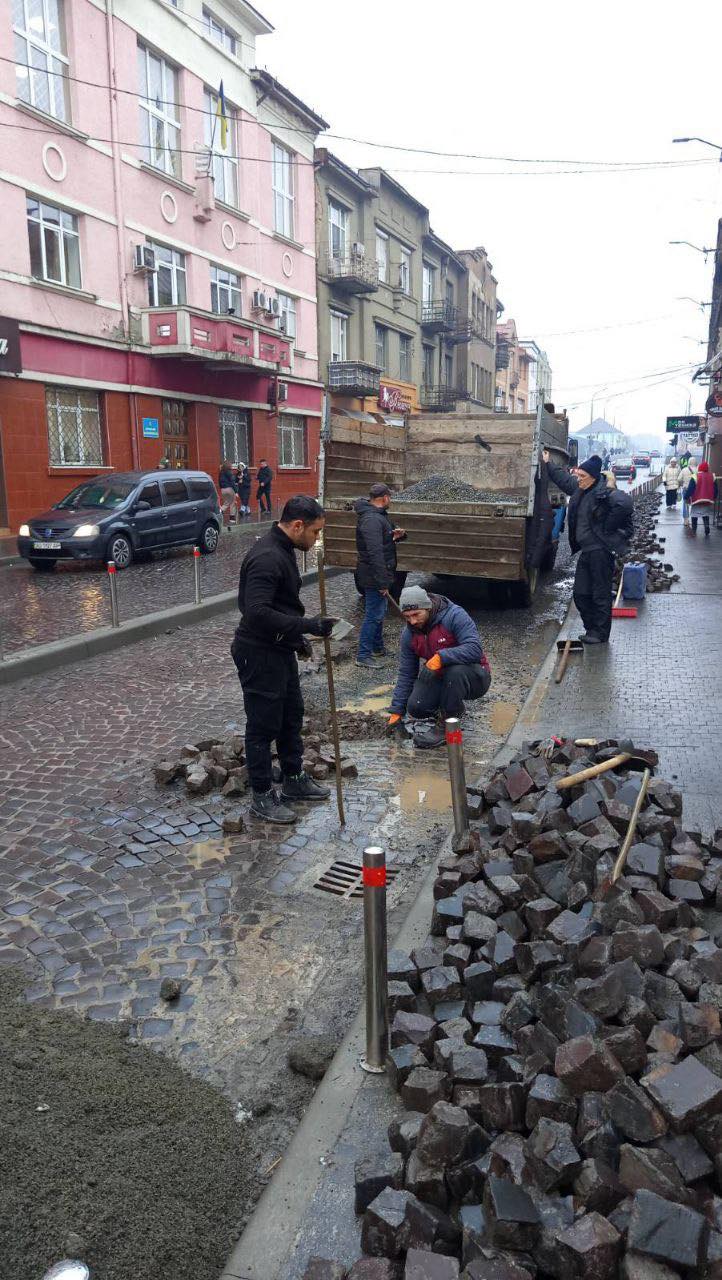 Також розпочато ремонт бруківки покриття на вул. Мостова та Соборна.