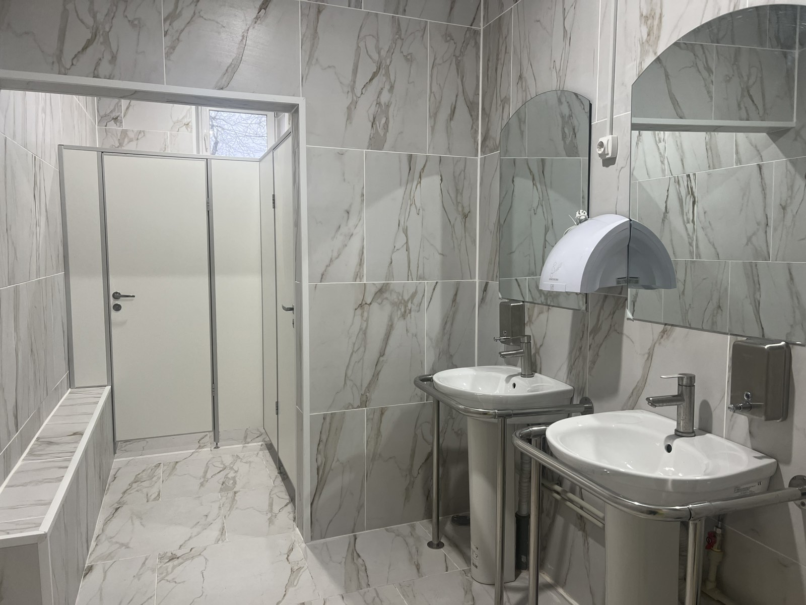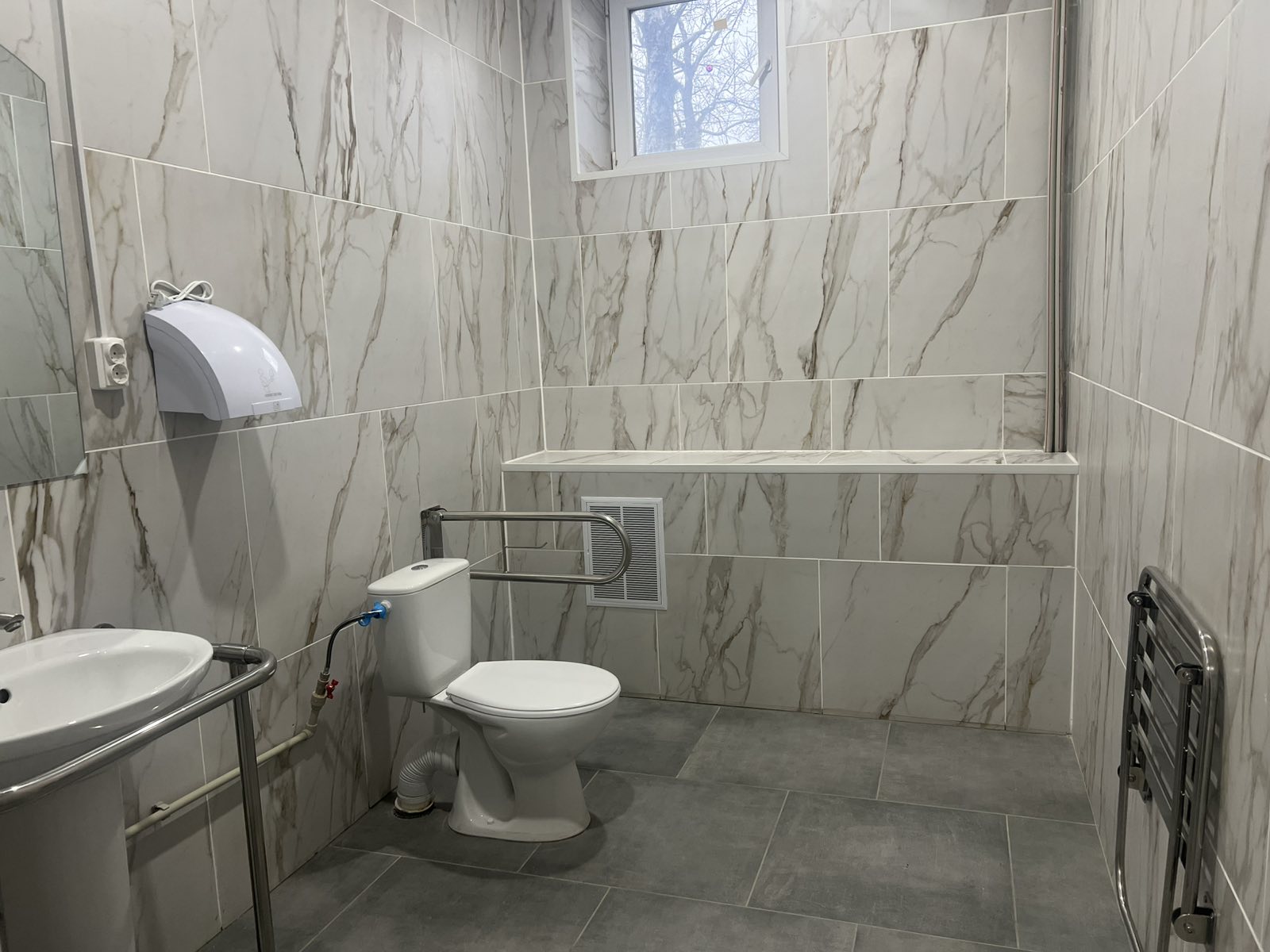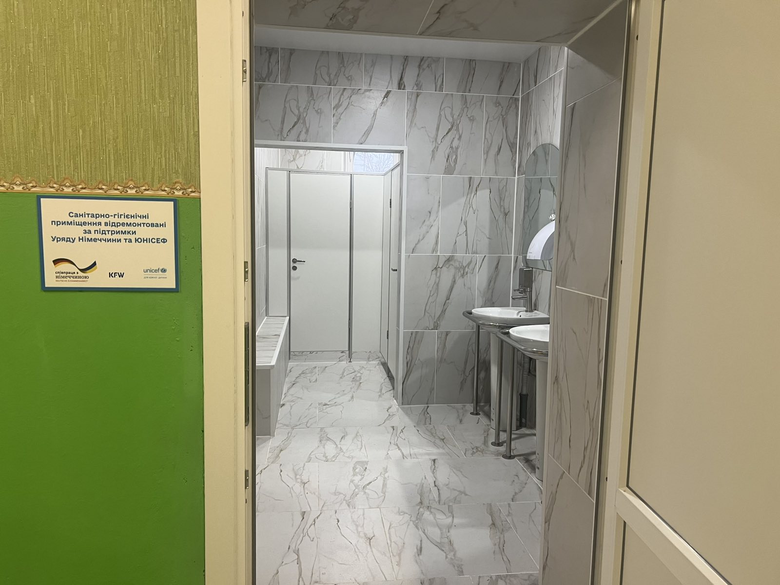 👌Все необхідне обладнання було встановлено після капітального ремонту приміщень, (облицювання кахлями, заміною дверей, прокладенням нових сучасних комунікацій). Ремонтували не лише приміщення туалетів, а й прилеглі коридори,пристосовуючи їх для безбар’єрного та доступного використання, включаючи маркування шрифтом Брайля.