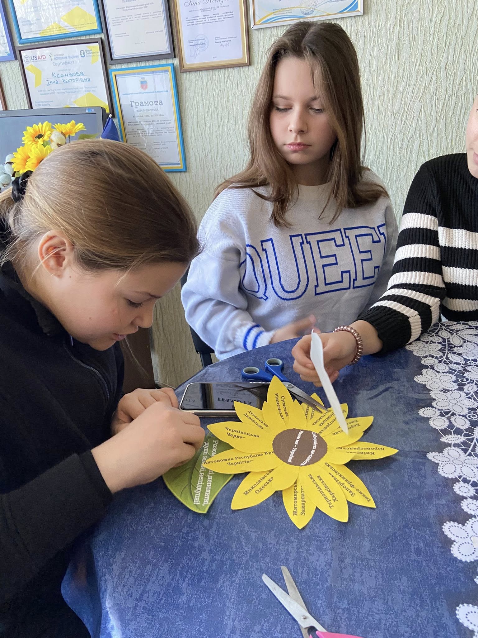 Юні учасники створювали соборні квіти — символ єдності, миру й надії, а також утворили живий ланцюг, об’єднавшись у дружньому колі.