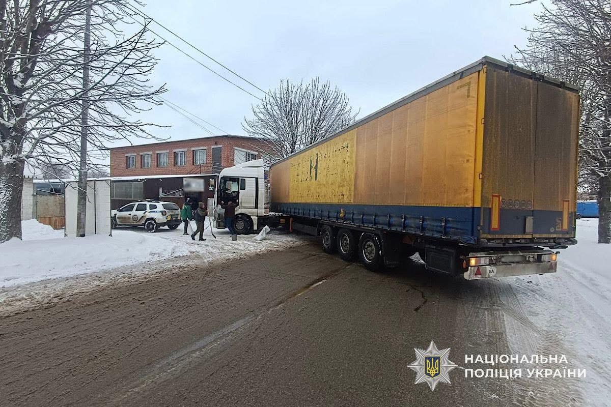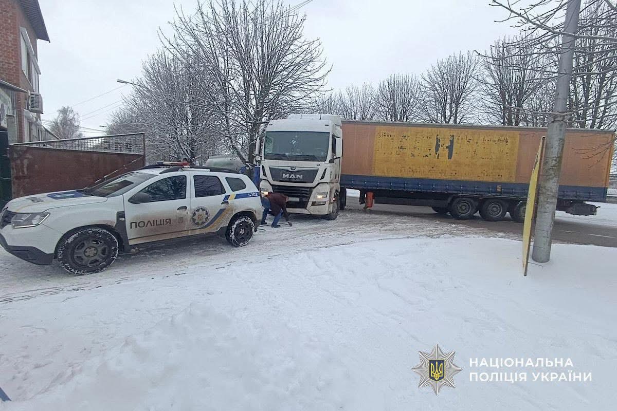 У Солоному через ожеледицю вантажний автомобіль з’їхав з проїзної частини на узбіччя та не зміг самостійно продовжити рух.