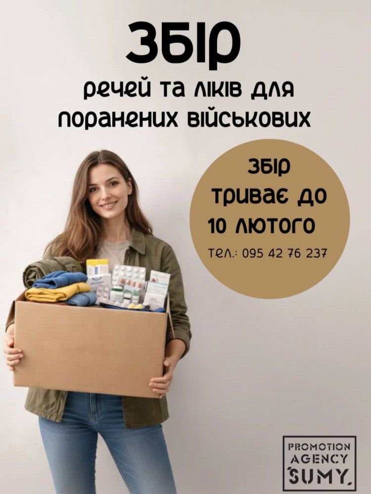 Агенція промоції «Суми» спільно з ГО «Кордон Єдності» та волонтерським загоном «Палаючі серця» проводять терміновий збір речей та медикаментів для українських воїнів, які проходять лікування.