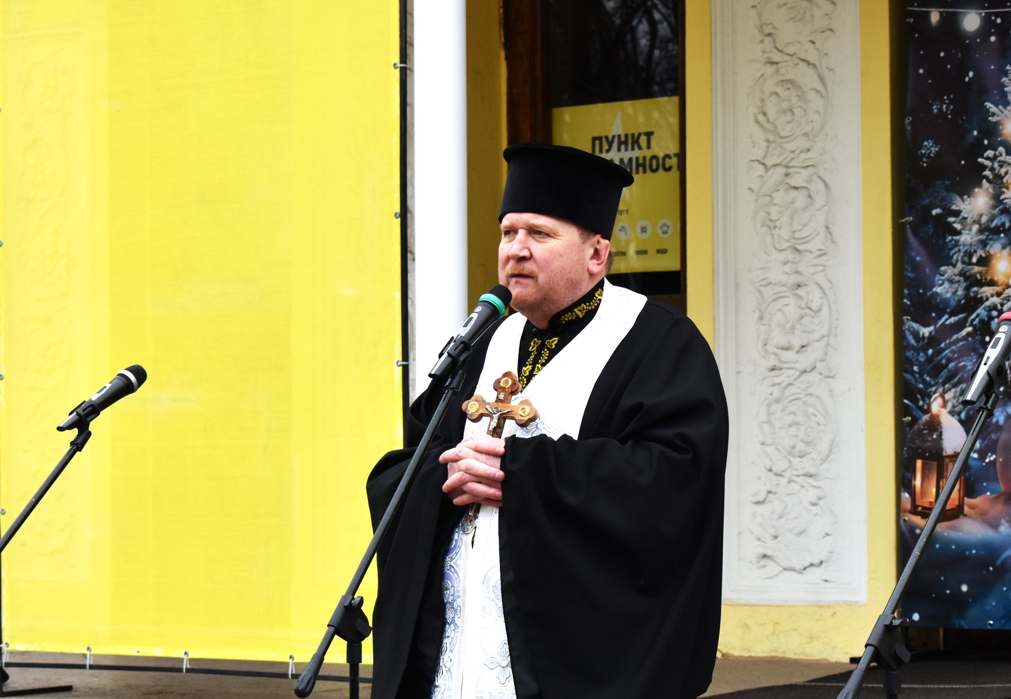 До присутніх звернувся настоятель храму Різдва Пресвятої Богородиці Православної Церкви України отець Павло, звучала спільна молитва як знак єдності громади і віри у нашу Перемогу!