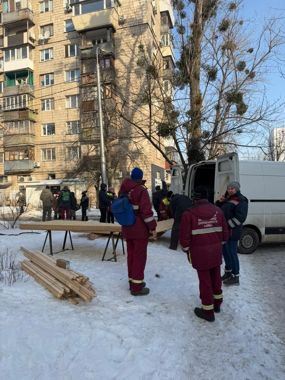 ⚠️У будинках Дніпровського району тривають роботи з ліквідації наслідків масованої нічної атаки на Київ.