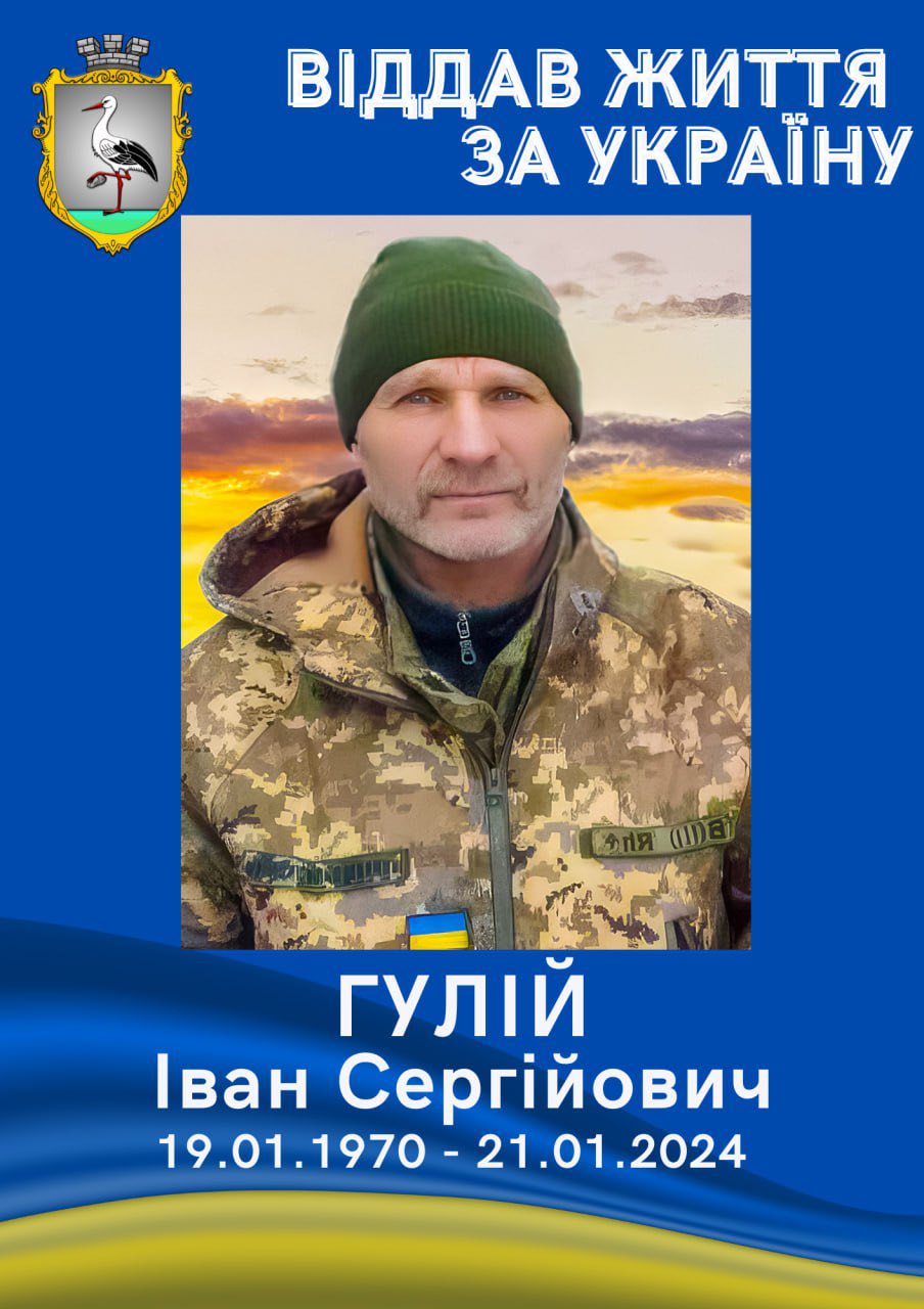 🕯 Івана Сергійовича Гулія (1970 р.н.) — молодшого сержанта, уродженця села Мала Побіянка, жителя села Синяківці. 21 січня 2024 року під час виконання службових обов’язків унаслідок ракетного удару в районі Мирнограда на Донеччині він загинув. 54 роки…
