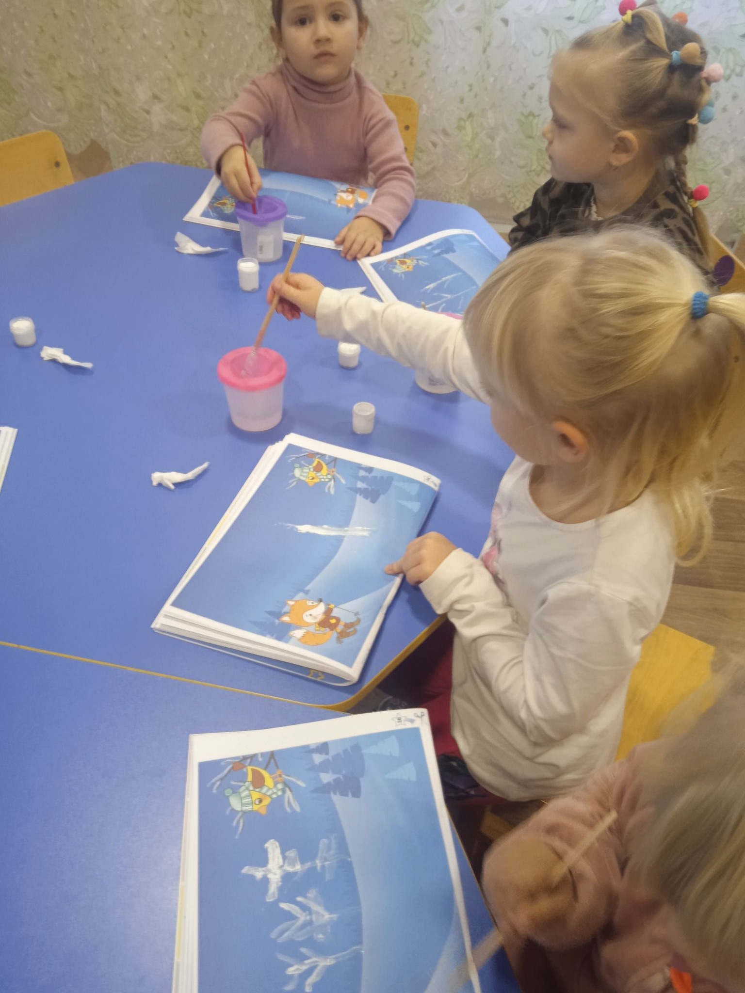 Діти малювали «Зимове дерево», вчили цифру 4 та робили ліплення «хусточка», тренуючи увагу й дрібну моторику.
