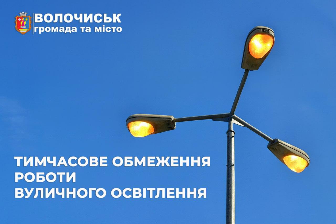 💡 У зв’язку з критичним станом енергетичної системи України, з сьогоднішнього дня у Волочиській громаді запроваджуються тимчасові обмеження у роботі вуличного освітлення.