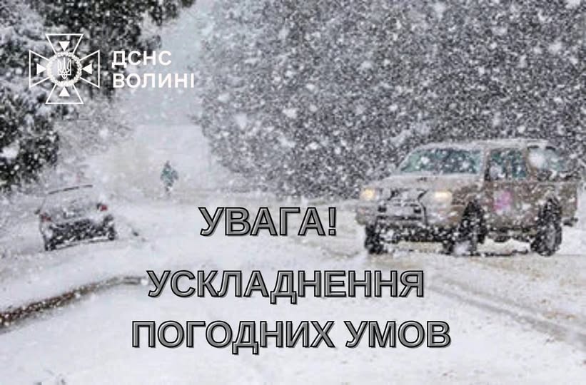 У зв’язку з переміщенням активного циклону з південного заходу 8-9 січня 2026 року на Волині, а також в інших західних, північних областях складні погодні умови: значний сніг, пориви вітру 15–18 м/с, хуртовини, на дорогах сніговий накат, ожеледиця.