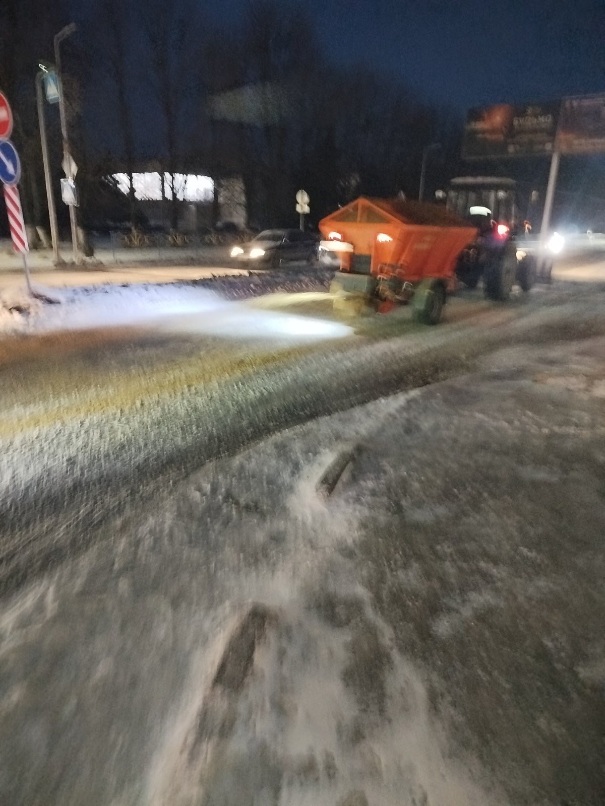Роботи виконуються з метою попередження утворення ожеледиці та забезпечення безпеки дорожнього руху.