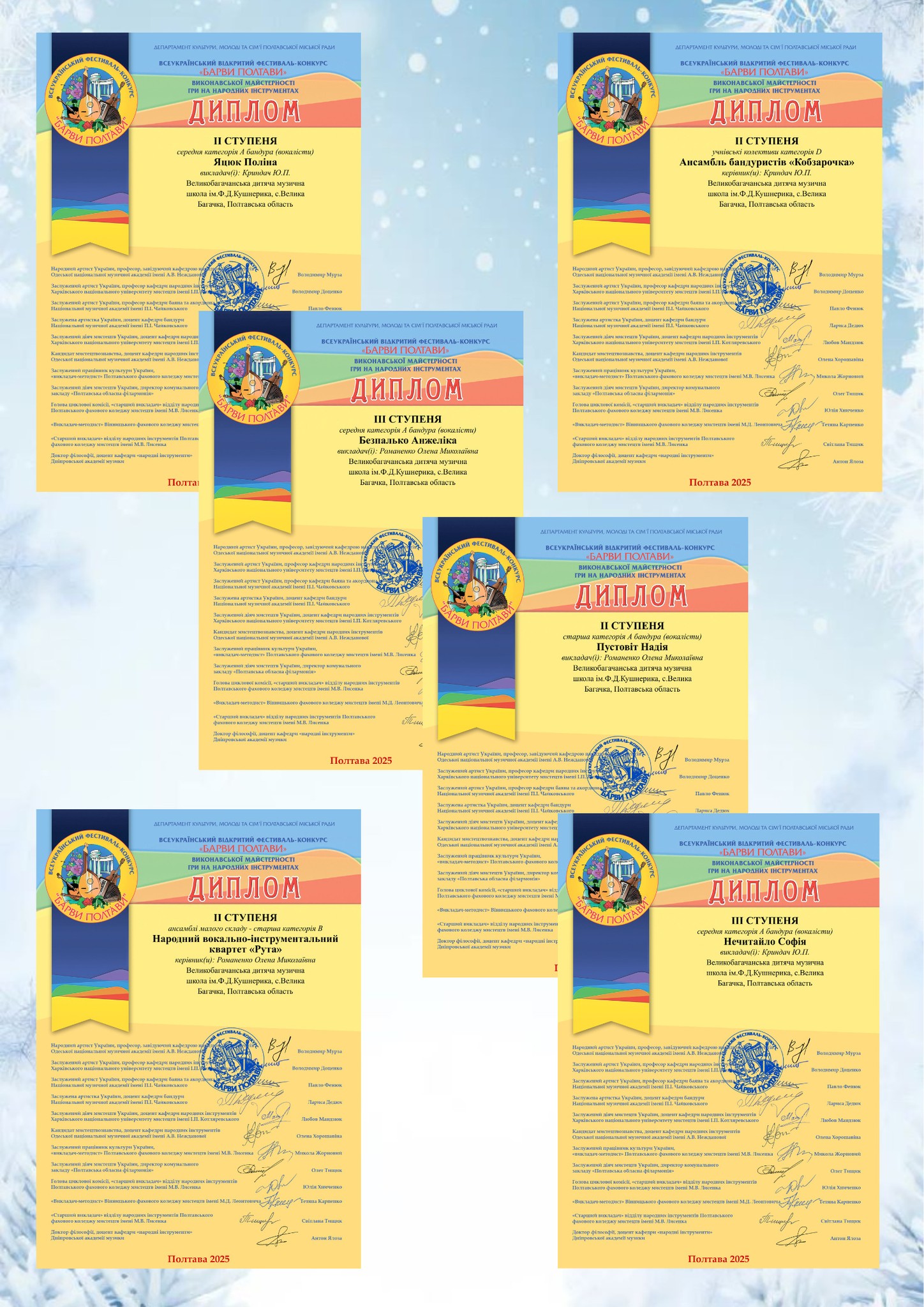 У листопаді – грудні 2025 року відбувся Всеукраїнський відкритий фестиваль-конкурс виконавської майстерності гри на народних інструментах учнів та викладачів мистецьких шкіл «Барви Полтави».