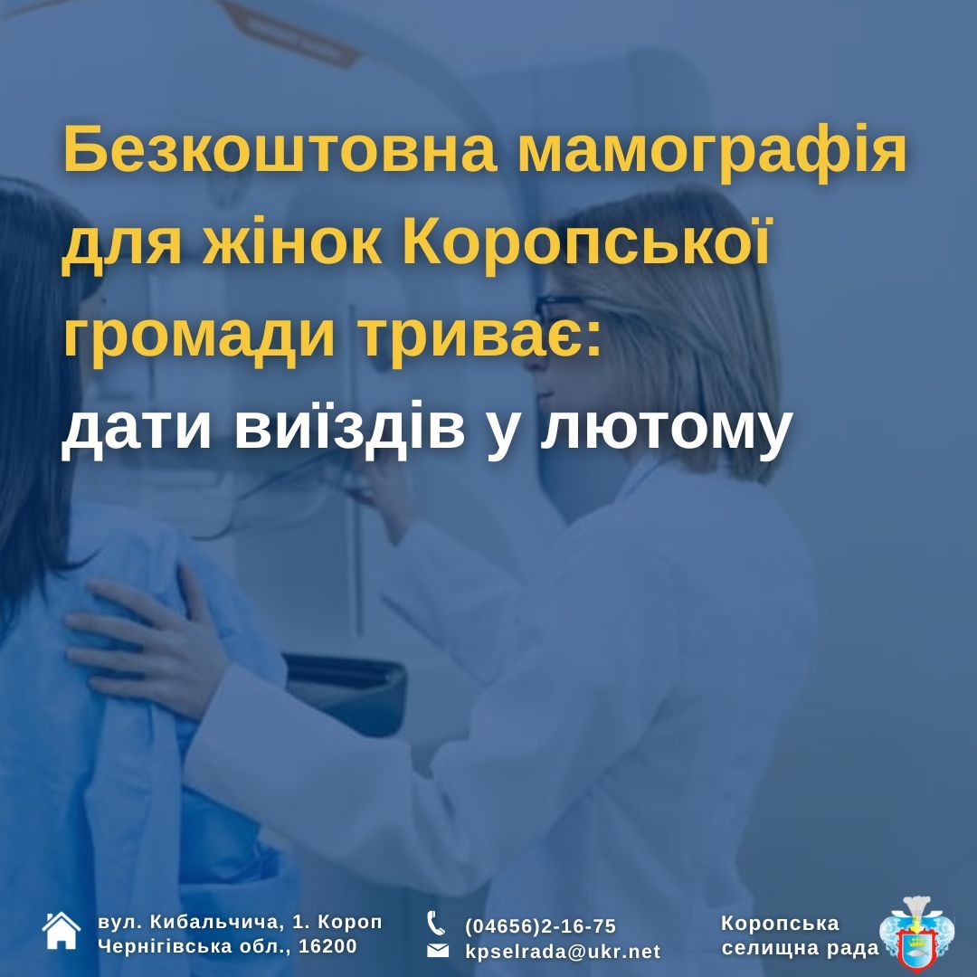👩⚕️ У 2025 році для жінок Коропської громади стартували безкоштовні обстеження у Чернігівському обласному центрі онкології, спрямовані на раннє виявлення раку молочної залози.