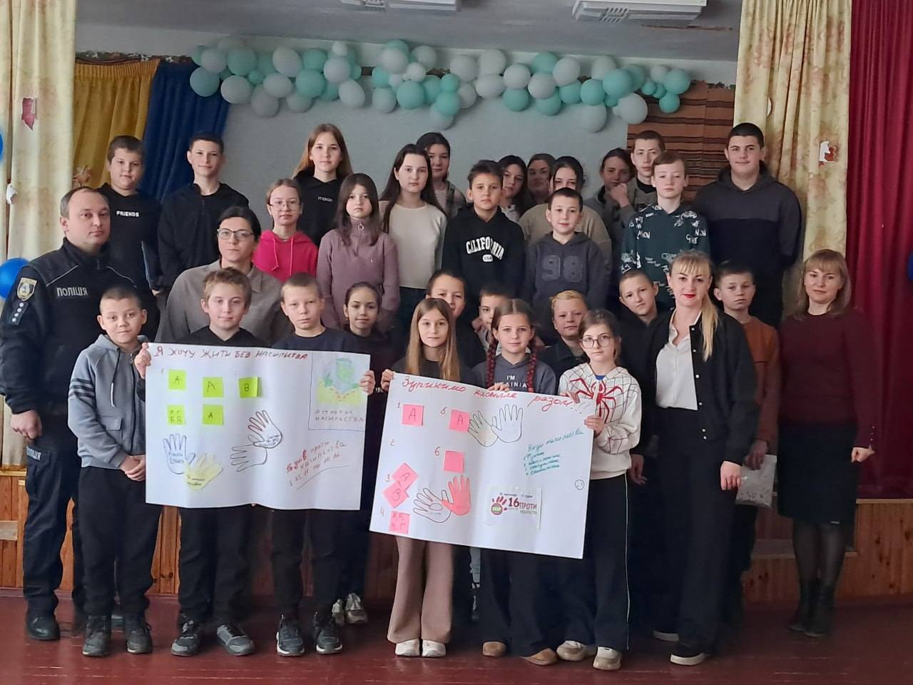Представники Служби у справах дітей та відділу освіти, молоді, фізичної культури та спорту спільно з поліцейським офіцером громади провели годину спілкування, під час якої говорили про те, що таке насильство, як його розпізнати, чому важливо поважати права інших та як діяти у складних ситуаціях. Окремо підняли теми ВІЛ/СНІДу, прав дитини та протидії булінгу.
