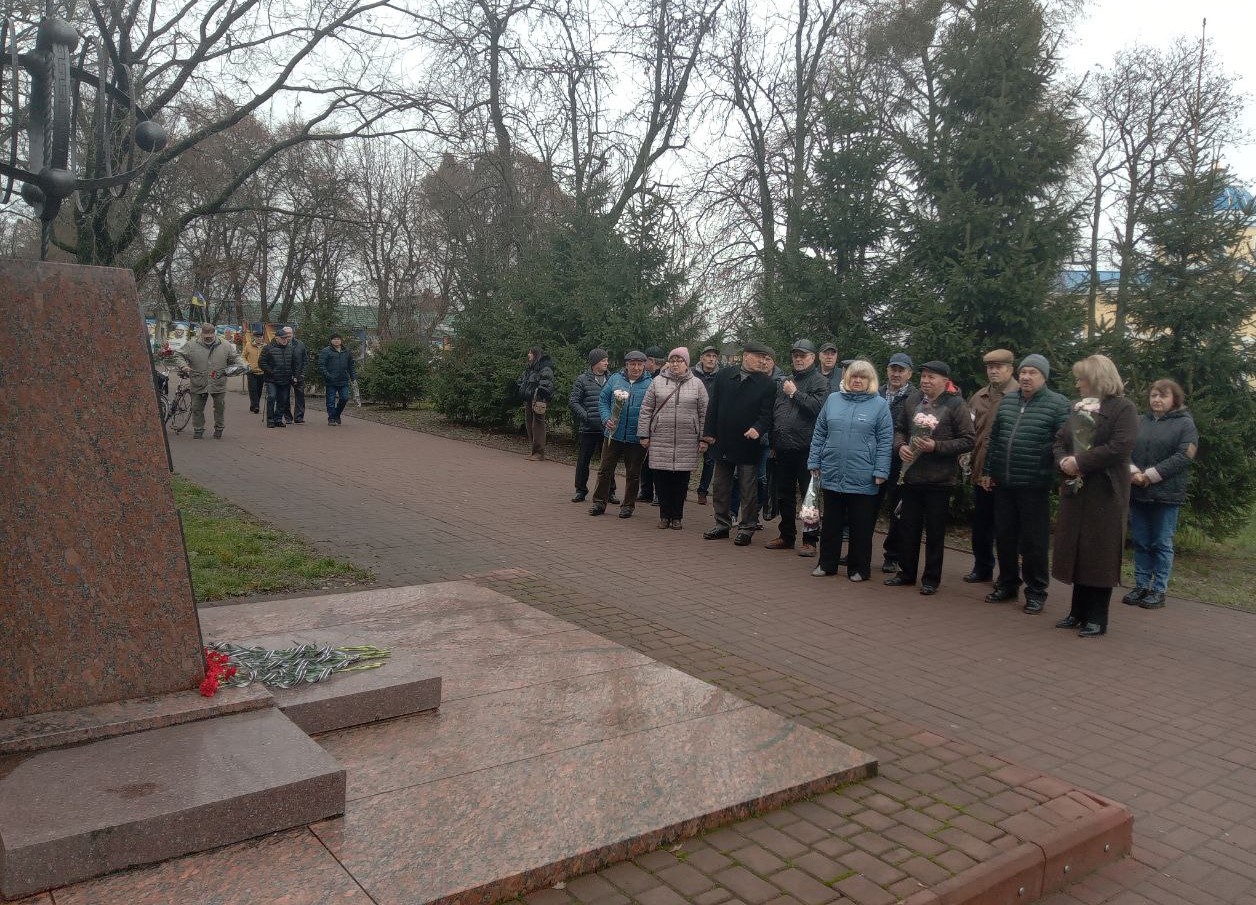 Згадуючи героїв чорнобильської катастрофи, присутні схилили голови й вшанували пам’ять загиблих ліквідаторів аварії – наших земляків – хвилиною мовчання та поклали квіти до пам’ятного знака «Жертвам Чорнобильської катастрофи».
