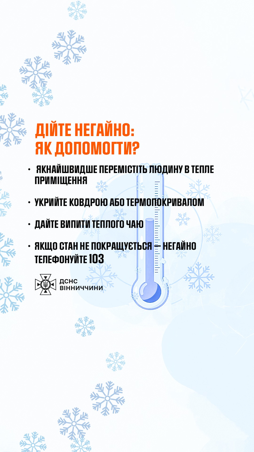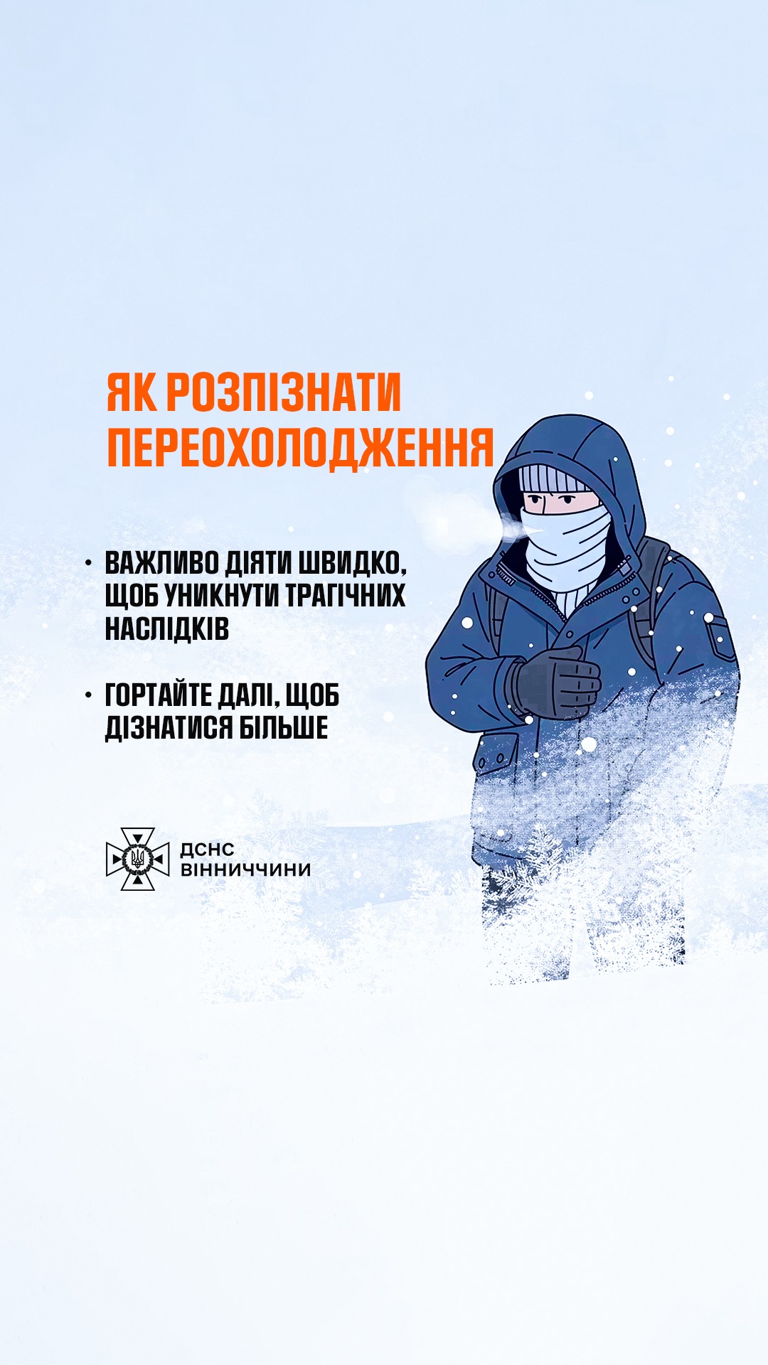 ☝Як повідомляють надзвичайники Вінниччини, переохолодження може настати непомітно. Тому важливо вчасно зігрітися та зробити перерву.