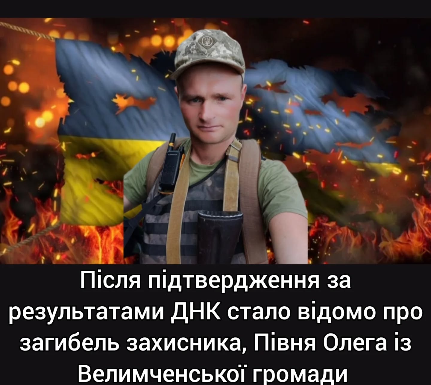 Після підтвердження за результатами ДНК з невимовним сумом стало відомо про загибель Захисника України, Півня Олега Володимировича, розвідник 2 розвідувального відділення розвідувального взводу 3 механізованого батальйону віsькової частини А 7013. Відданий Війsьковій присязі на вірність Українському народу, мужньо виконавши війsьковий обовʼязок, в бою за Україну, її свободу і незалежність, загинув 30.11.2023