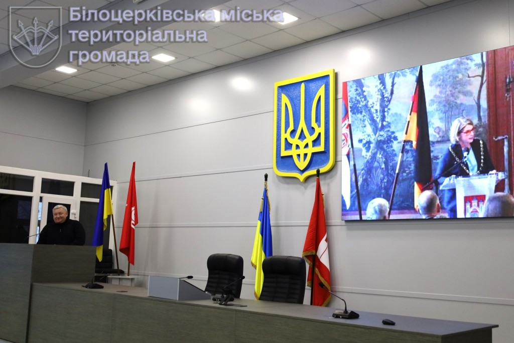 У форматі онлайн до урочистого заходу долучилася Біла Церква. Володимир Вовкотруб подякував німецьким друзям за послідовну солідарність з Україною, співпрацю та постійну гуманітарну допомогу громаді.