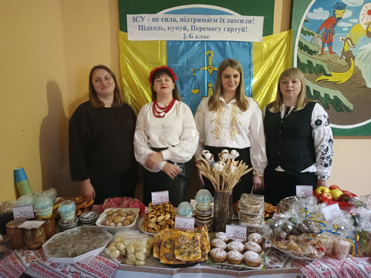Плідними стали благодійні ярмарки у Бондарівському ліцеї (зібрано 24 000 гривень, які спрямовано на закупівлю дронів) та його Великохайчанській філії (зібрано 10 720 грн, на які закуплено парафін для виготовлення окопних свічок). 19028 гривень зібрано у Норинському ліцеї, які спрямовано на закупівлю дронів, 17700 грн зібрано у Покалівському ліцеї. У Великофоснянській гімназії загальна сума збору склала 15000 грн, на які придбано генератор. Окрім того, ще зібрано продукти харчування, засоби гігієни, газові балончики, медикаменти та шкарпетки, виготовлено 3 ящики окопних свічок. У Левковицькій гімназії зібрано загалом 7000 гривень (3000 з них спрямовано на дрон, решту – на ліки для військовослужбовців).