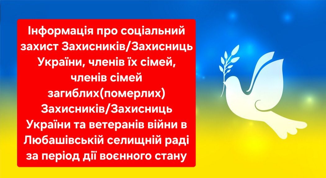 Протягом 2025 року на території громади діє Комплексна Програма підтримки Захисників/Захисниць України та членів їхніх сімей, членів сімей загиблих(померлих)/ зниклих безвісти Захисників/Захисниць України в Любашівській селищній територіальній громаді на 2025 – 2027 роки, затверджена рішенням селищної ради від 17.12.2024 №7380. На виконання заходів цих програм передбачено та вже виплачено протягом дії воєнного стану в період з 2022 по 2025 рік: