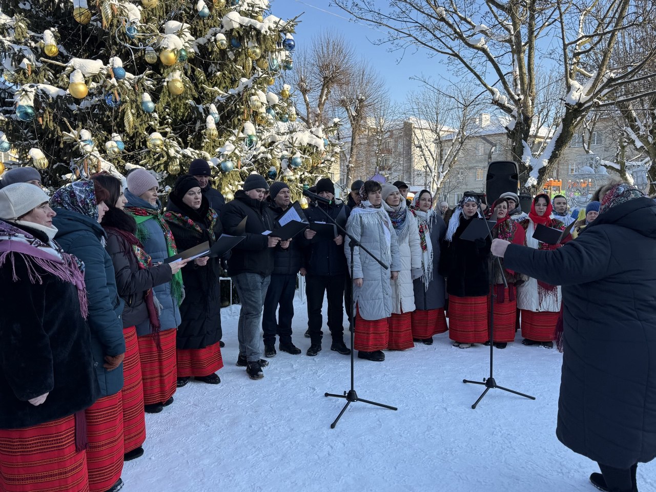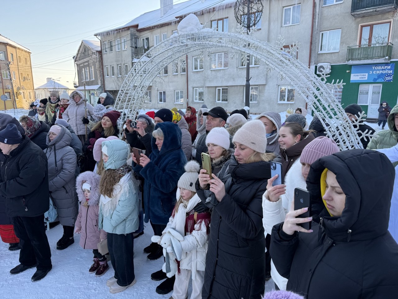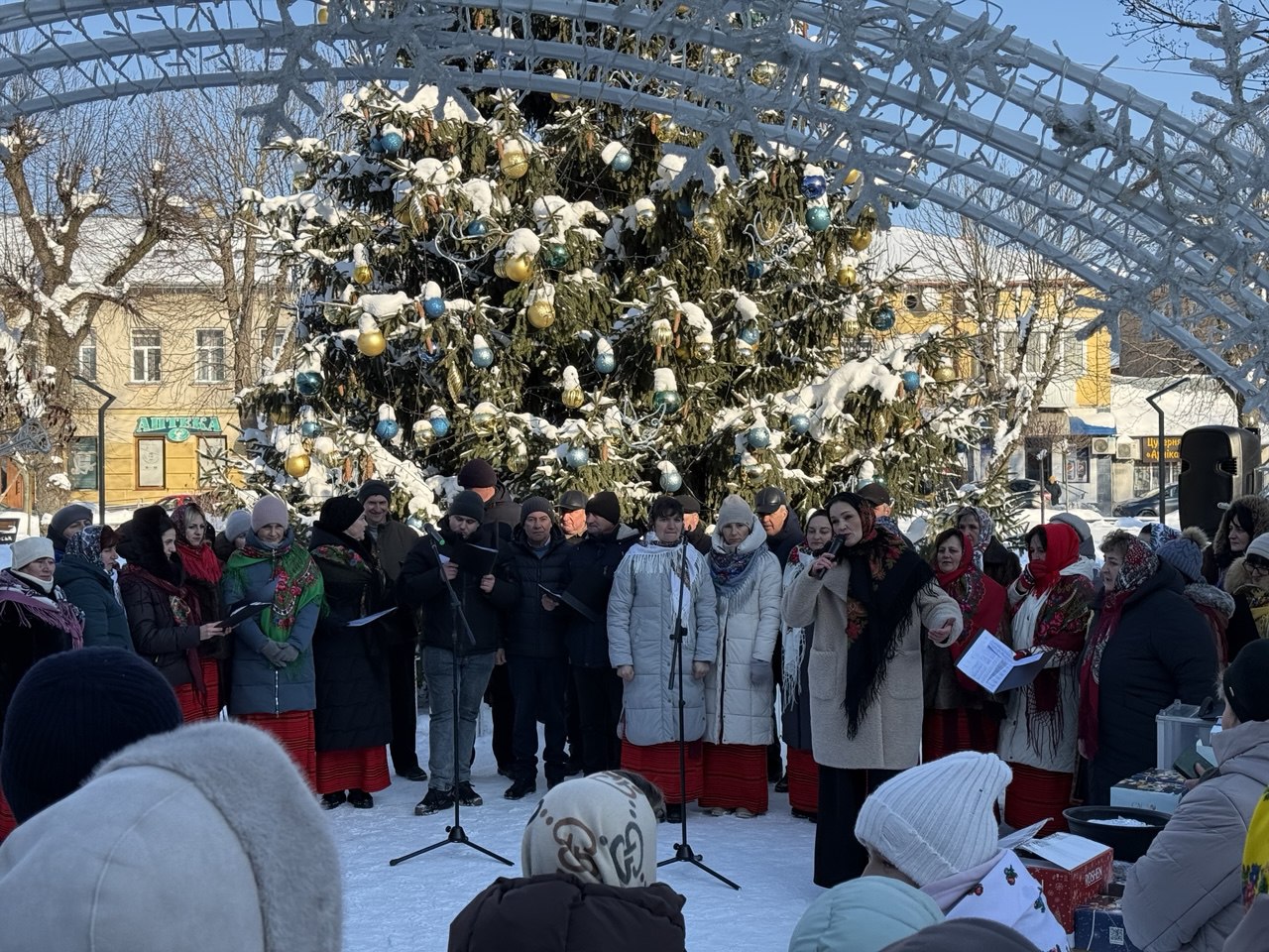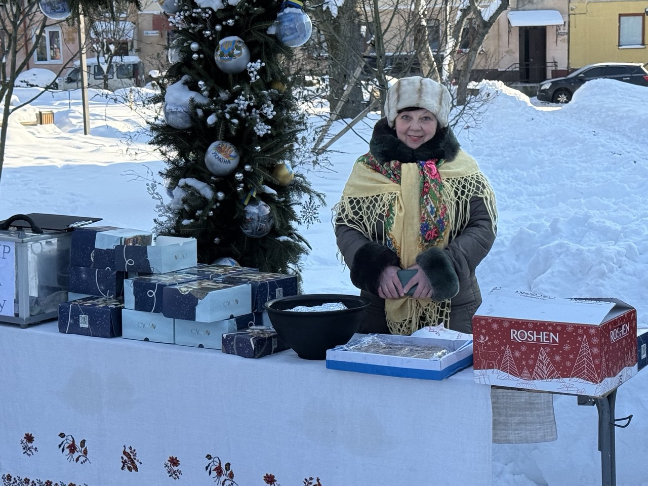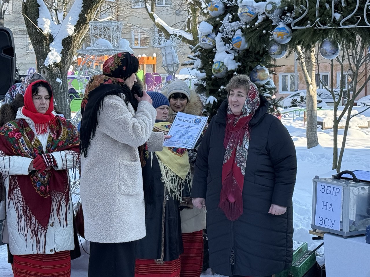 🔸 Святкова атмосфера панувала з перших хвилин заходу. Усі, хто цього морозного дня завітав до Різдвяної шопки та ялинки в центрі міста, мали змогу насолодитися виступами талановитих вокальних виконавців і творчих колективів, поринути у магію різдвяних вистав — вертепів, а також долучитися до збору коштів на придбання спеціальної тканини для виготовлення волонтерською групою жінок «Злий лелека» зимових маскувальних сіток для наших військових (зібрано 3700 гривень). Пампухами та іншою домашньою випічкою учасників та глядачів пригощала за донат на сітки завідувачка Народного дому с. Яблунівка Ганна Грушицька.