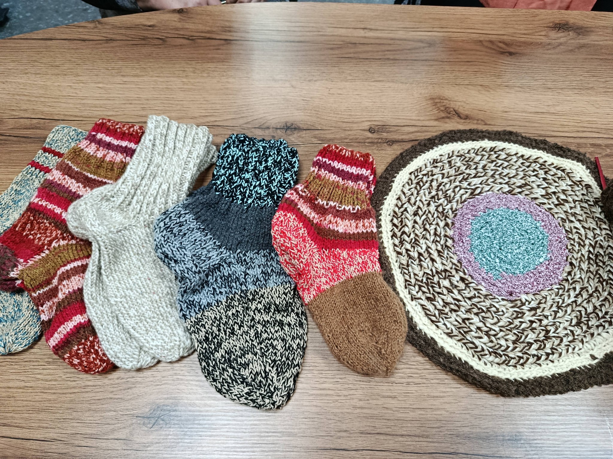 Уже є перші результати спільної роботи — учасниці клубу Тетяна Стахова та Ганна Мельник презентували виготовлені власноруч теплі шкарпетки з різнокольорової пряжі. Активну участь у творчому процесі також бере Любов Негодюк разом з іншими небайдужими учасницями, які продовжують працювати над благодійними виробами вдома.