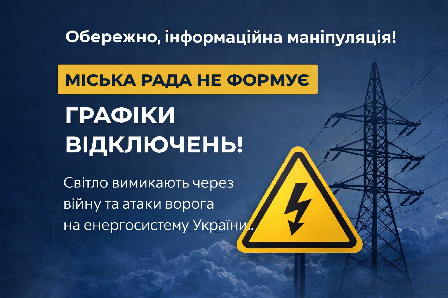 У соціальних мережах знову поширюється маніпулятивна та неправдива інформація щодо нібито причетності міської ради та міського голови до відключень електроенергії та формування графіків відключень.