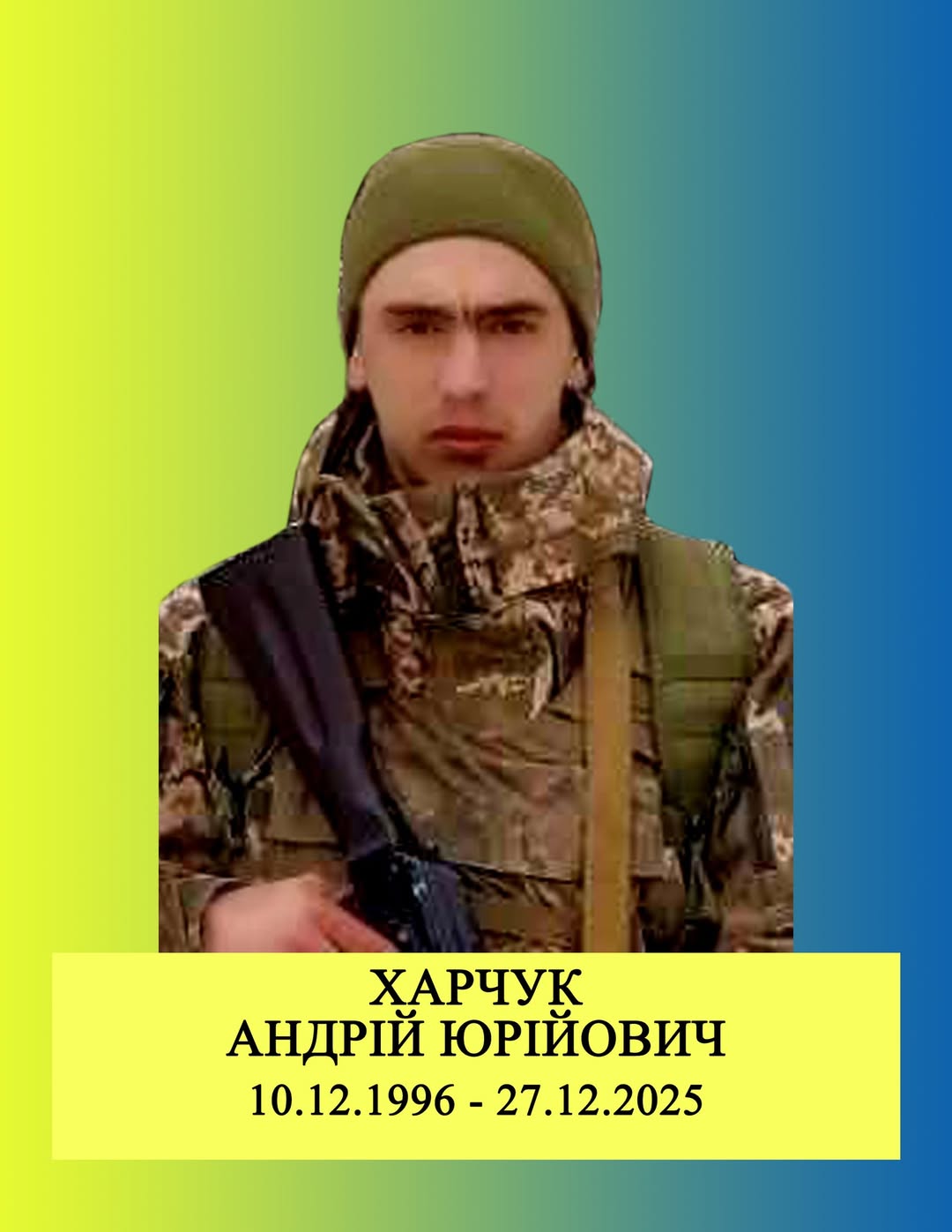 🕯️У суботу, 3 січня 2026 року у Старокостянтинівській громаді відбудеться церемонія прощання із захисником України – солдатом ХАРЧУКОМ АНДРІЄМ ЮРІЙОВИЧЕМ, 1996 року народження.