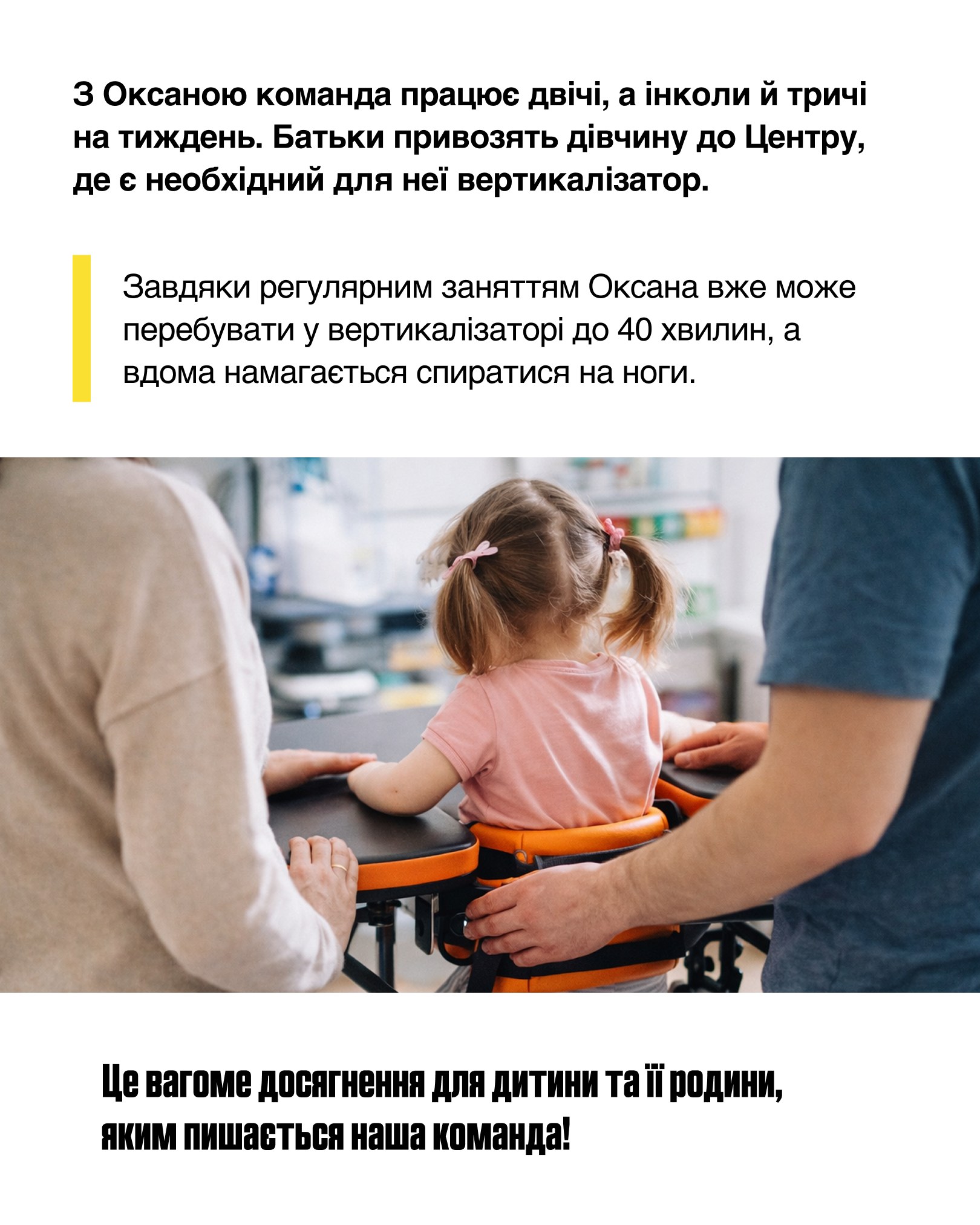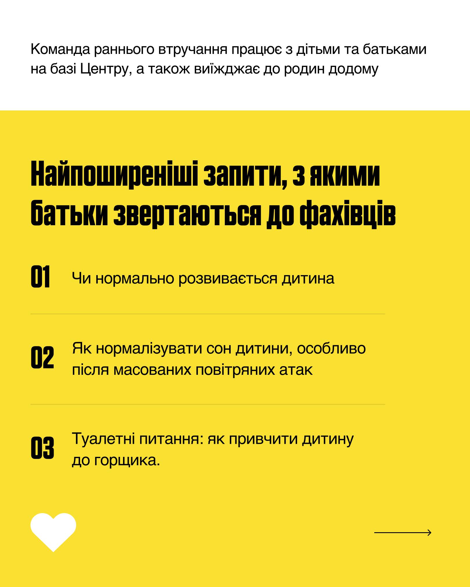 Водночас зростає й кількість самозвернень: батьки дізнаються про роботу команди від інших родин і звертаються за допомогою, коли помічають, що дитина не має тих вмінь і навичок, які є в однолітків, або вбачають труднощі в спілкуванні чи годуванні, налагодженні туалетних питань тощо.