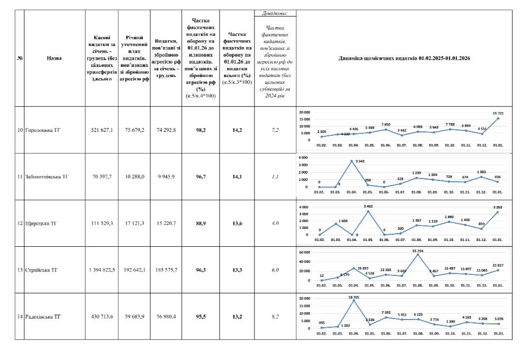 Але є й інша, неприємна частина картини. На четвертому році повномасштабної війни в області досі залишаються громади, які виділяють критично малі кошти на потреби, пов’язані зі збройною агресією рocії.