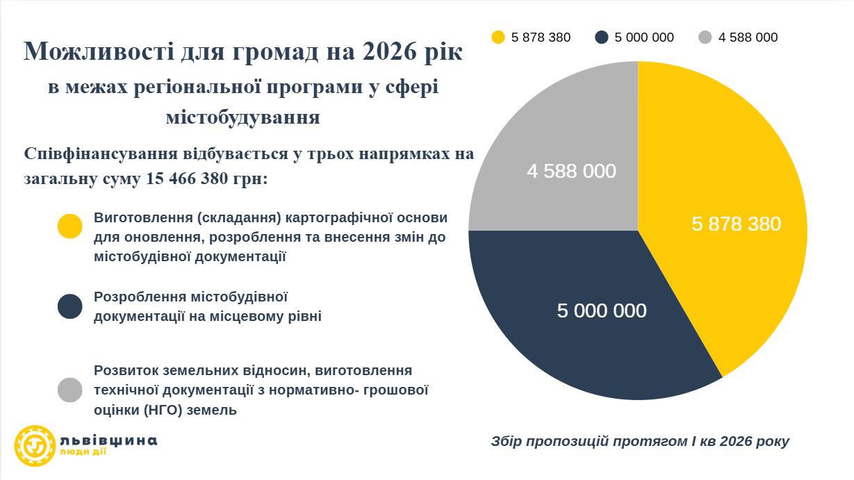 📌У межах Регіональної програми розвитку містобудування на 2021–2026 роки у 2026 році передбачено фінансування ключових заходів із підготовки та оновлення містобудівної і землевпорядної документації територіальних громад.