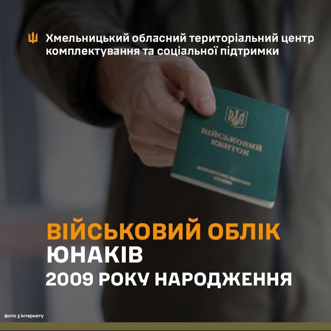У 2026 році підлягають взяттю на військовий облік призовників громадяни України 2009 року народження.