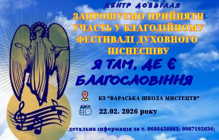 Центр дозвілля, напередодні Національного дня молитви за Україну, запрошуємо всіх охочих взяти участь у фестивалі духовного піснеспіву.