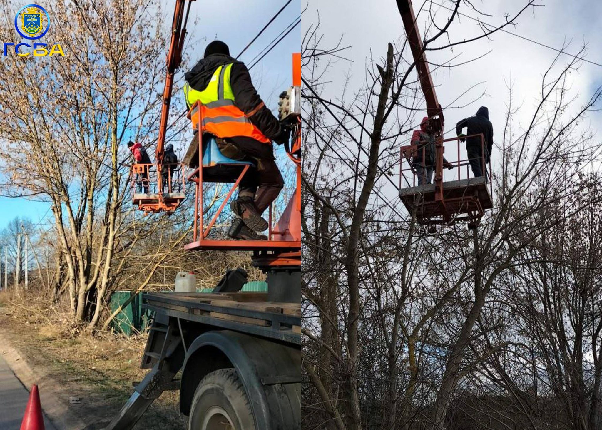 Наразі комунальні служби виконують очищення ліній електропередач вуличного освітлення від гілок дерев. Це сприятиме безперебійній роботі вуличних ліхтарів та запобіганню аварійним ситуаціям. Також фахівці проводять збір і вивезення гілок та сухостою.