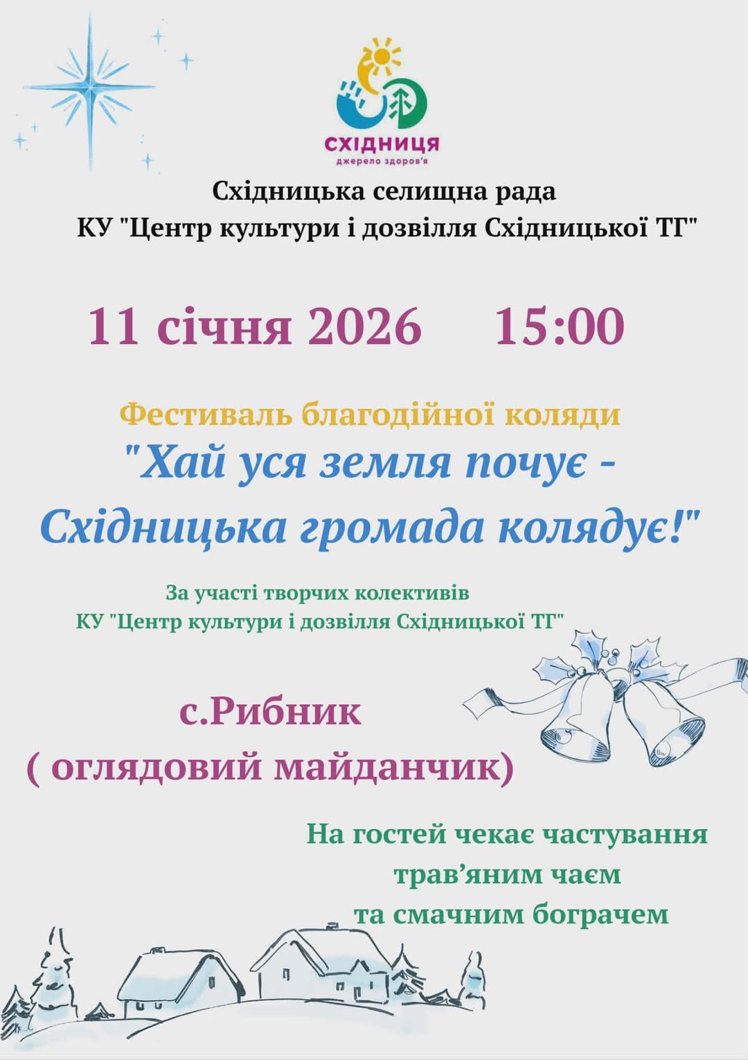 Уже цієї неділі, 11 січня 2026 року, він завітає на оглядовий майданчик до села Рибник. На присутніх чекають колядки, частування травʼяним чаєм та смачним бограчем.