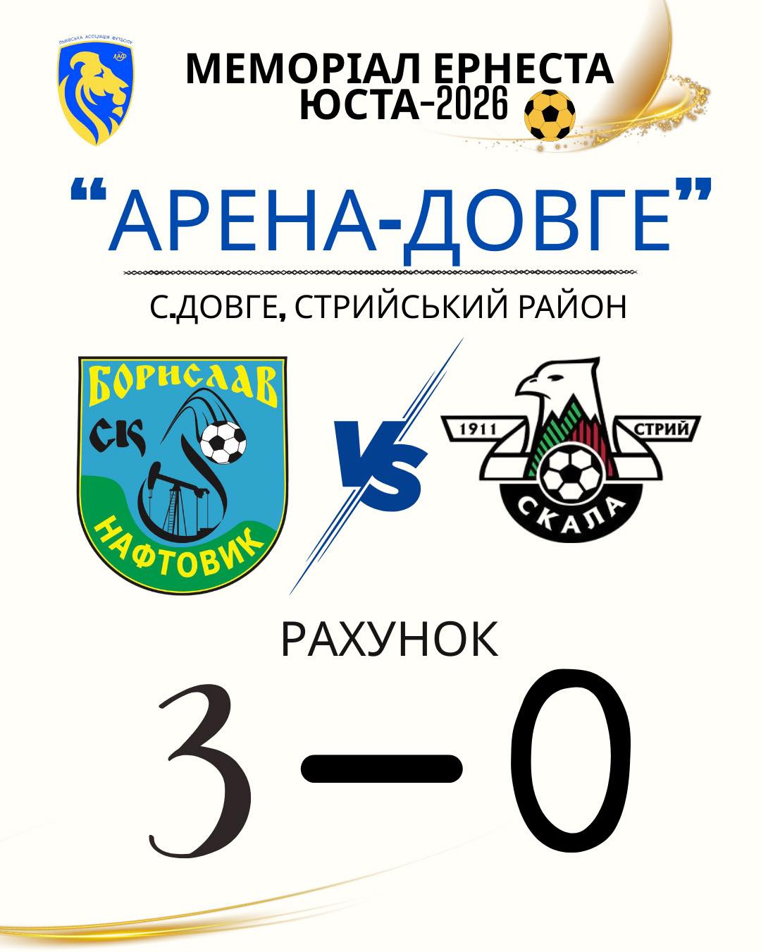 Зимове міжсезоння — це не привід для паузи у футбольному житті Львівщини. Традиційно на початку року стартував Меморіал пам’яті видатного тренера Ернеста Юста. Цьогоріч змагання відбуваються вже 27-й раз, а боротьбу за трофей розпочали 32 команди, серед яких і представник нашої громади — СК «Нафтовик» (Борислав). Команди-учасники розділені на 8 груп. Згідно з регламентом, до наступного етапу (1/8 фіналу) вийдуть ті з них, які посядуть перші та другі місця у своїх групах. Фінальний поєдинок заплановано на 28 лютого.