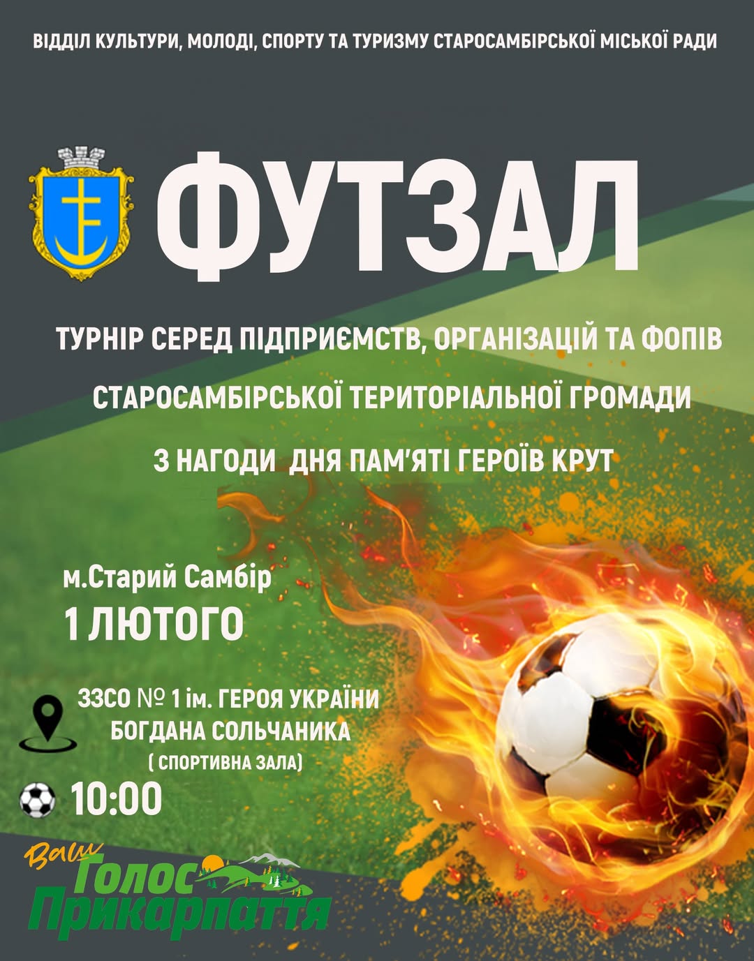 Запрошуємо команди підприємств, організацій та ФОПів Старосамбірської територіальної громади взяти участь у футзальному турнірі серед дорослих (18+).