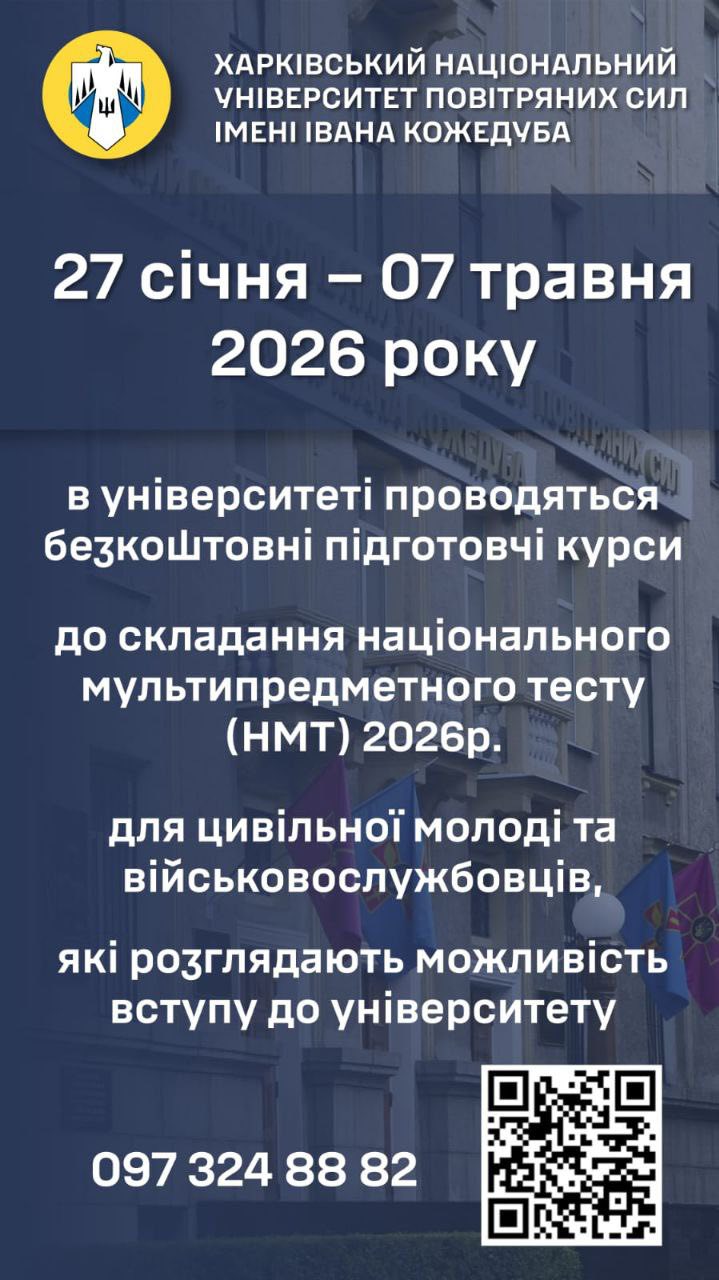27 січня – 07 травня 2026 року в університеті проводиться безкоштовні підготовчі курси до складання НМТ.