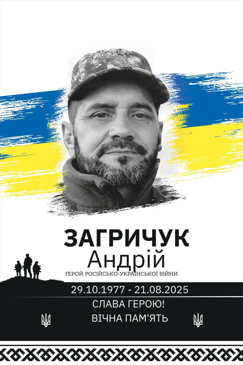 Андрій ЗАГРИЧУК, 47-річний старший солдат Національної гвардії України, загинув 21 серпня 2025 року під час виконання бойового завдання на Покровщині. Ворожий дрон обірвав життя воїна з позивним «Хмара».