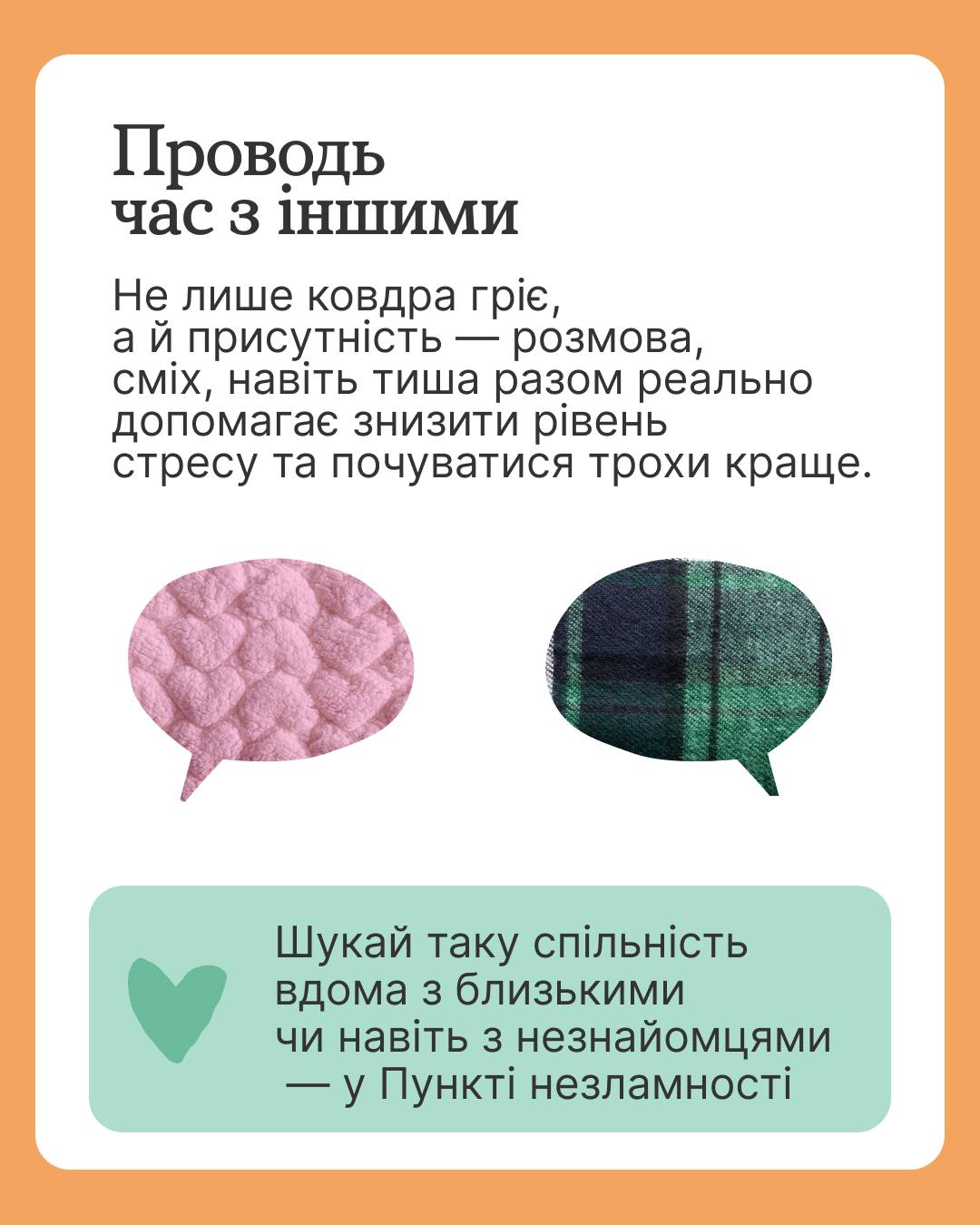 Використовуй усі доступні, але безпечні способи зробити собі тепліше. Та поділися своїми з іншими в коментарях 🫂